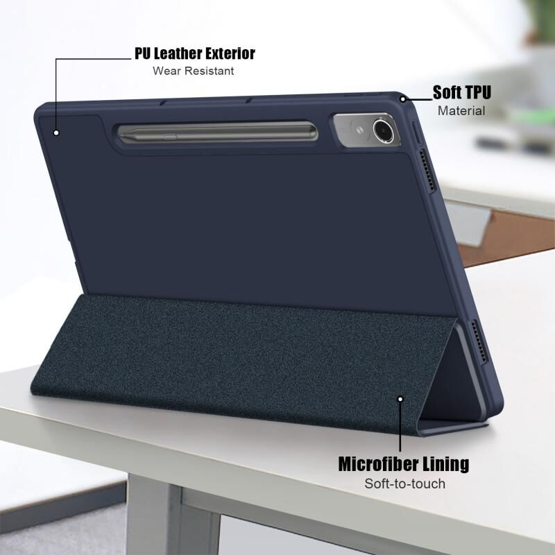 For Lenovo Tab P12 12.7 /P12 Pro 2nd Gen 3-folding TPU Smart Leather Tablet Case(Dark Blue)