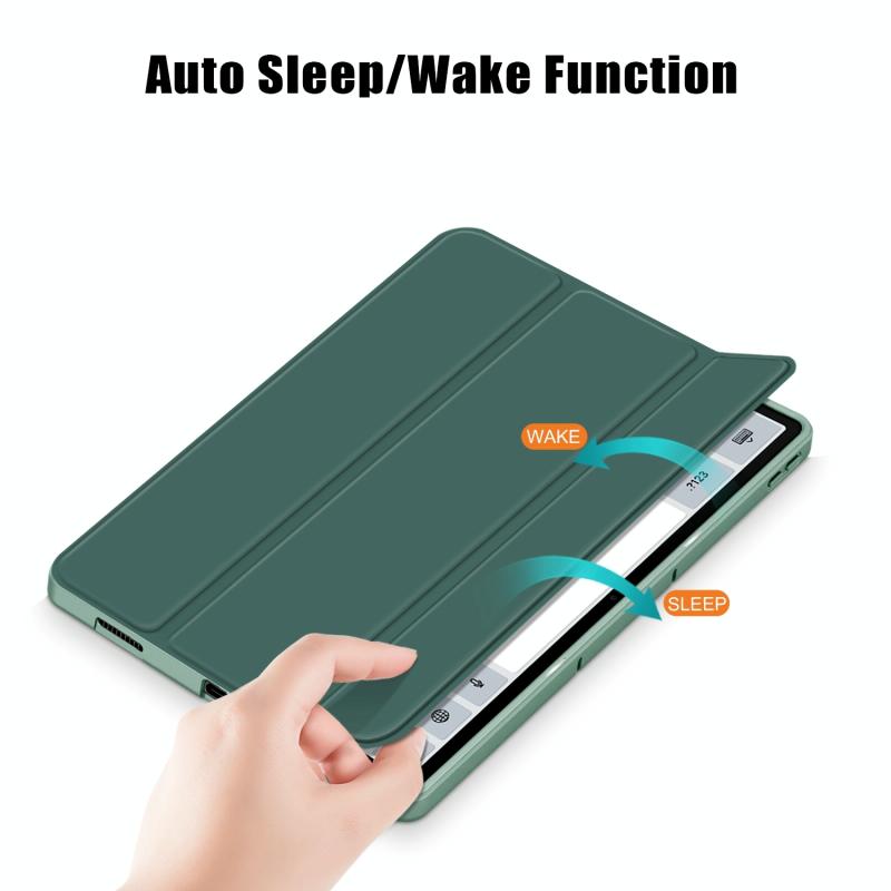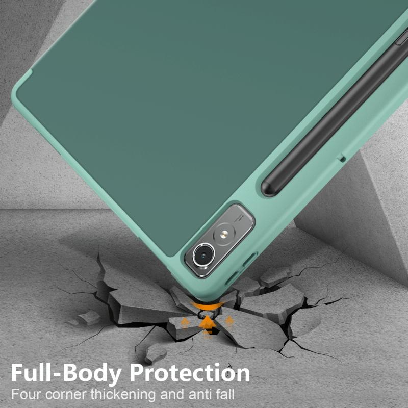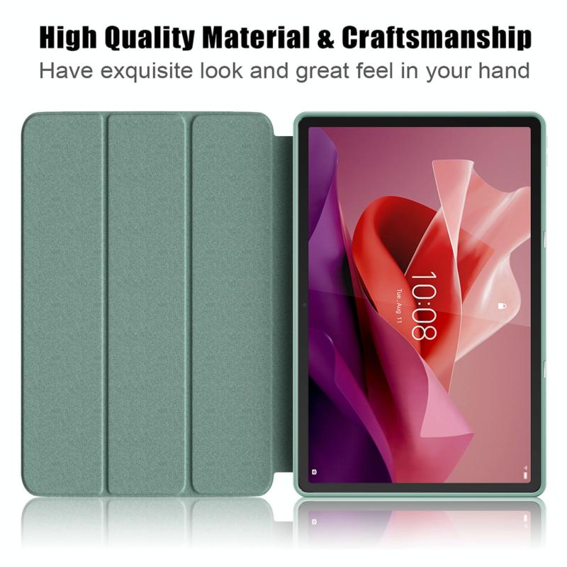 For Lenovo Tab P12 12.7 /P12 Pro 2nd Gen 3-folding TPU Smart Leather Tablet Case(Deep Green)
