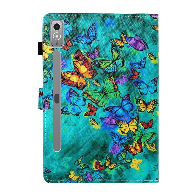 Θήκη ταμπλέτας από δέρμα με έξυπνη ραφή και σχέδια για Lenovo Tab P12 2023 / TB370FU (Πράσινη Πεταλούδα)
