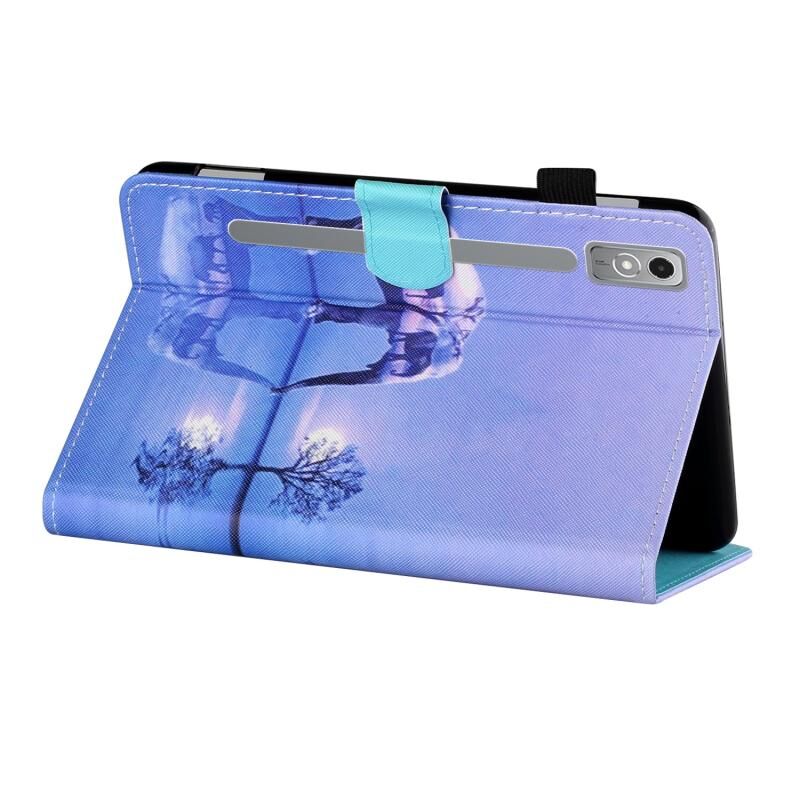 Θήκη ταμπλέτας από έξυπνο δέρμα με ραφές και έγχρωμο σχέδιο για Lenovo Tab P12 2023 / TB370FU (Δέντρο και Ελέφαντας)