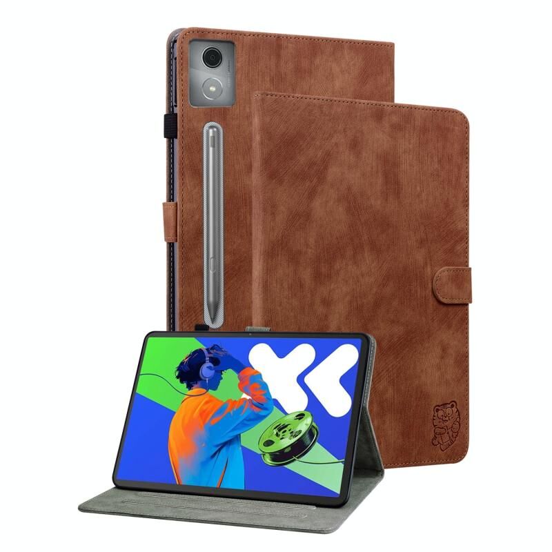 Θήκη δερμάτινη με σχέδιο τίγρης για Lenovo Tab P12 Pro 12.7 2025 (Γκρι)