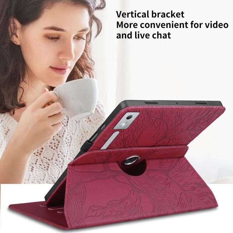 Για Lenovo Tab P12 / Xiaoxin Pad Pro 12.7 2025 Tree Life ανάγλυφη περιστροφή δερμάτινη θήκη tablet (κόκκινο)