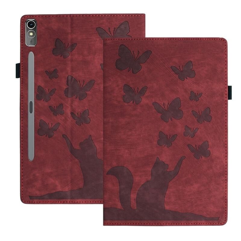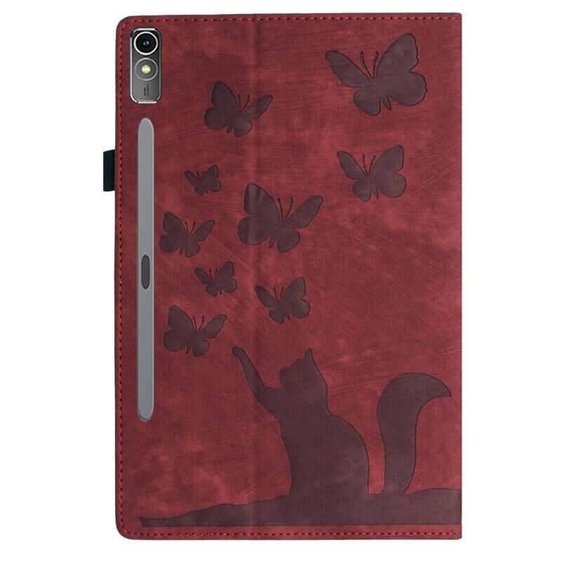 Θήκη ταμπλέτας από δέρμα με ανάγλυφο σχέδιο πεταλούδας γάτας για Lenovo Tab P12 / Xiaoxin Pad Pro 12.7 (Σκούρο Μπλε)