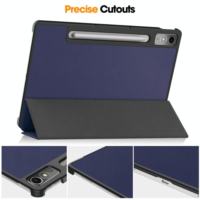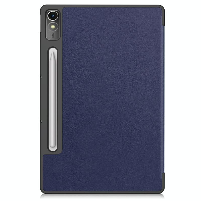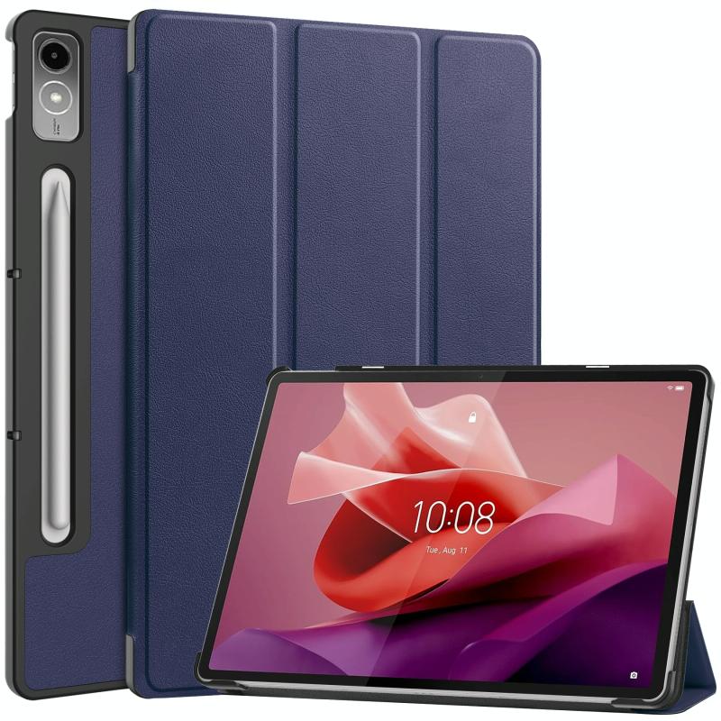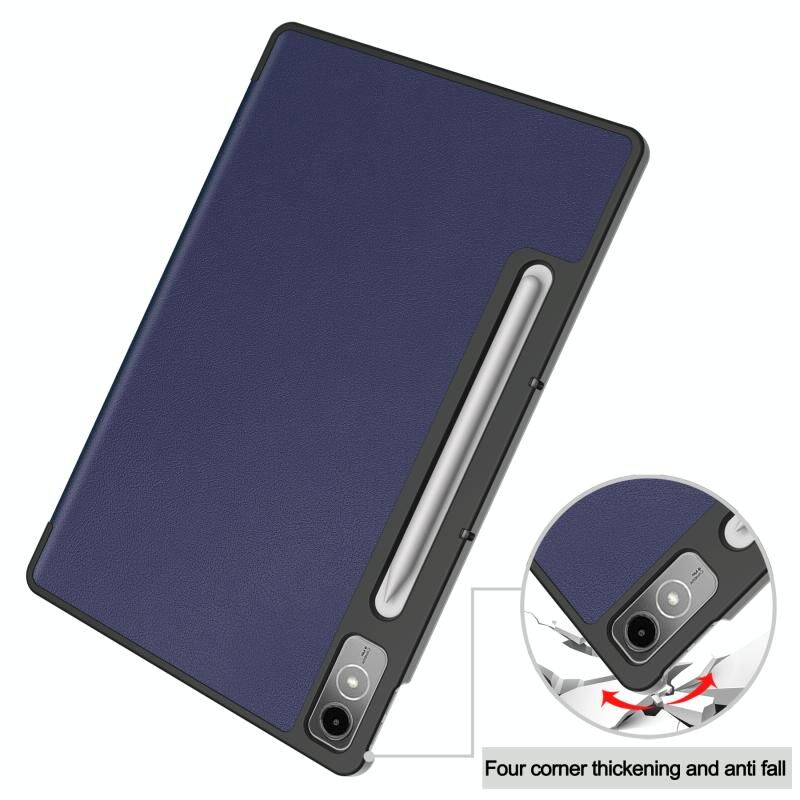 For Lenovo Tab P12/Xiaoxin Pad Pro 12.7 inch Custer Solid Color 3-Fold Stand Leather Tablet Case(Dark Blue)