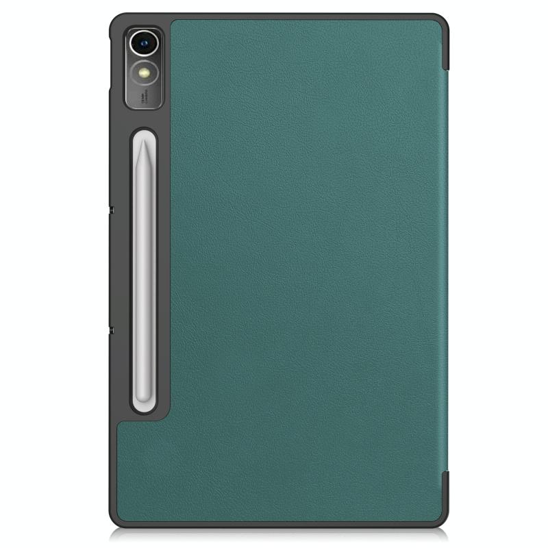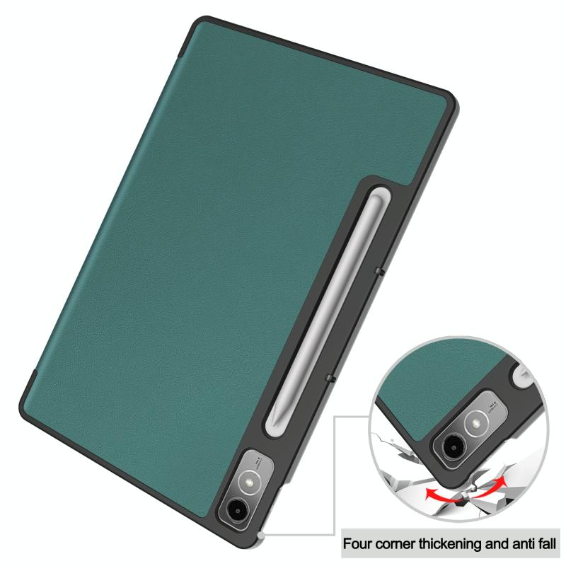 For Lenovo Tab P12/Xiaoxin Pad Pro 12.7 inch Custer Solid Color 3-Fold Stand Leather Tablet Case(Dark Green)