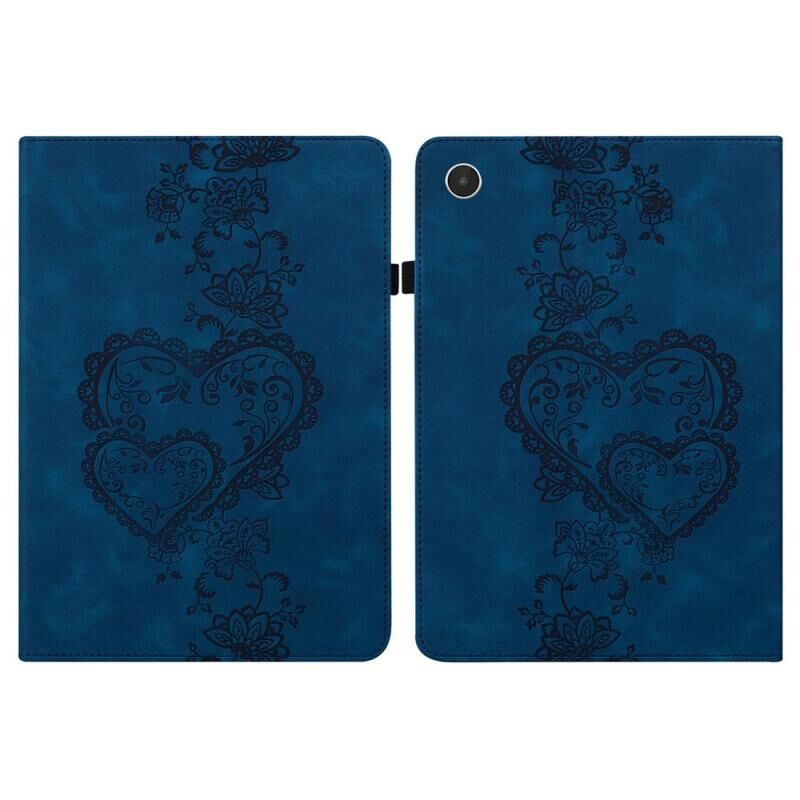 Θήκη Ταμπλέτας Lenovo Tab Plus με ανάγλυφα καρδιές από δέρμα (Καφέ)