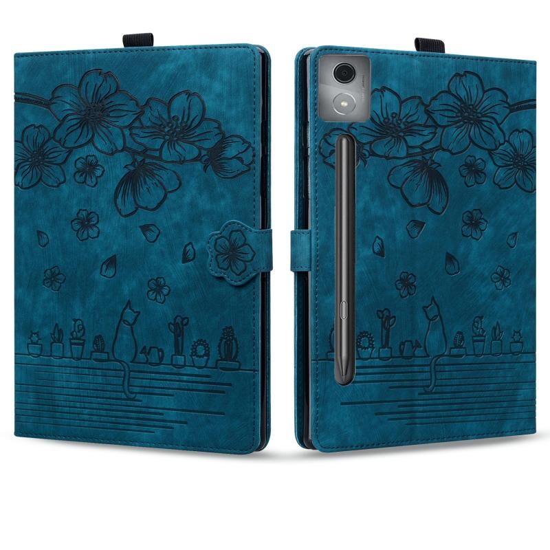 For Lenovo Xiaoxin Pad Pro 12.7 2025 Cartoon Sakura Cat Embossed Leather Tablet Case(Blue)