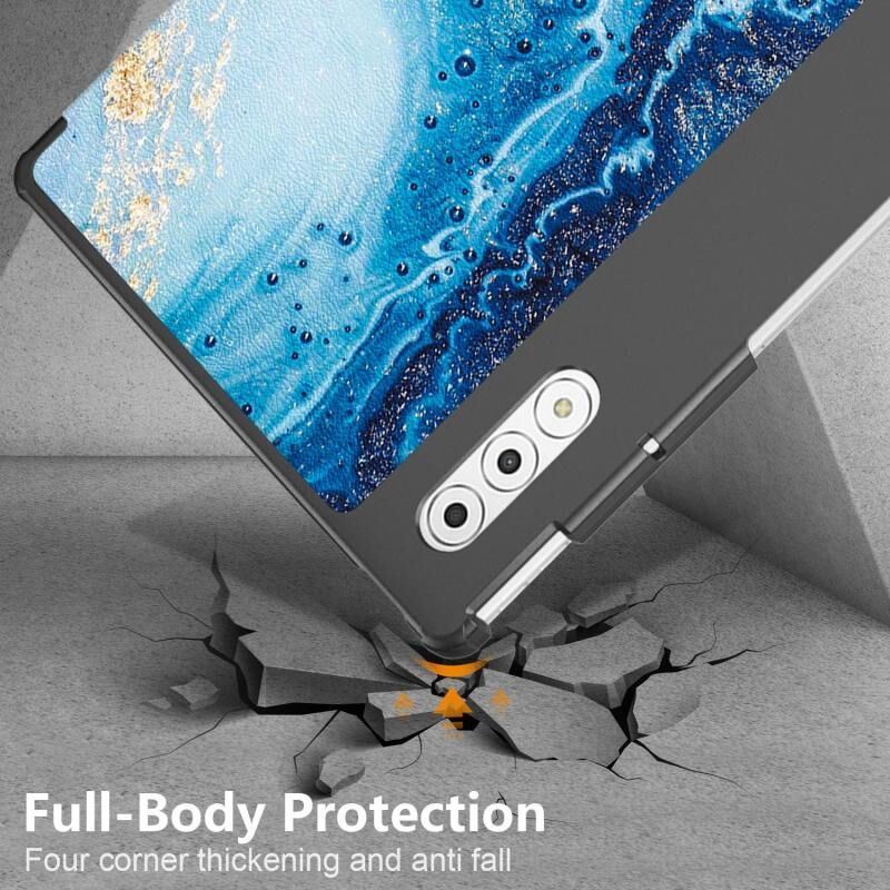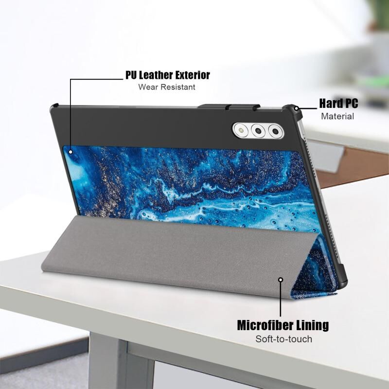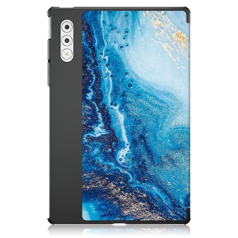 For Lenovo Yoga Tab Plus Custer Coloured Drawing 3-folding Leather Smart Tablet Case(Waves)