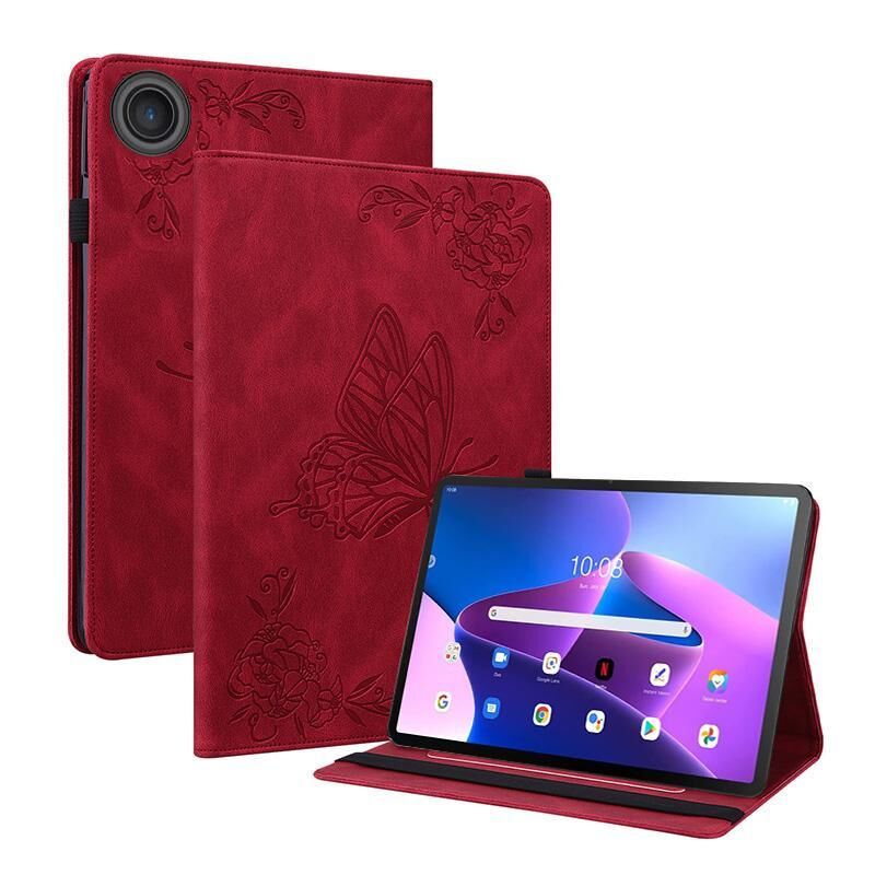 For Lenovo ZhaoYang K10C 10.1 inch Butterfly Flower Embossed Leather Tablet Case(Red)