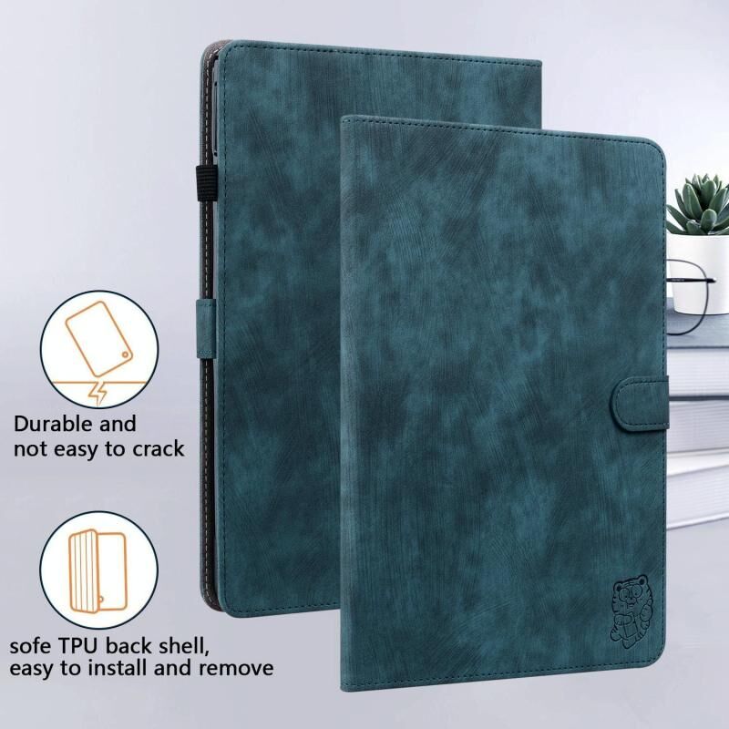 For Lenovo ZhaoYang K10C 10.1 inch Embossed Tiger Pattern Leather Tablet Case(Dark Blue)