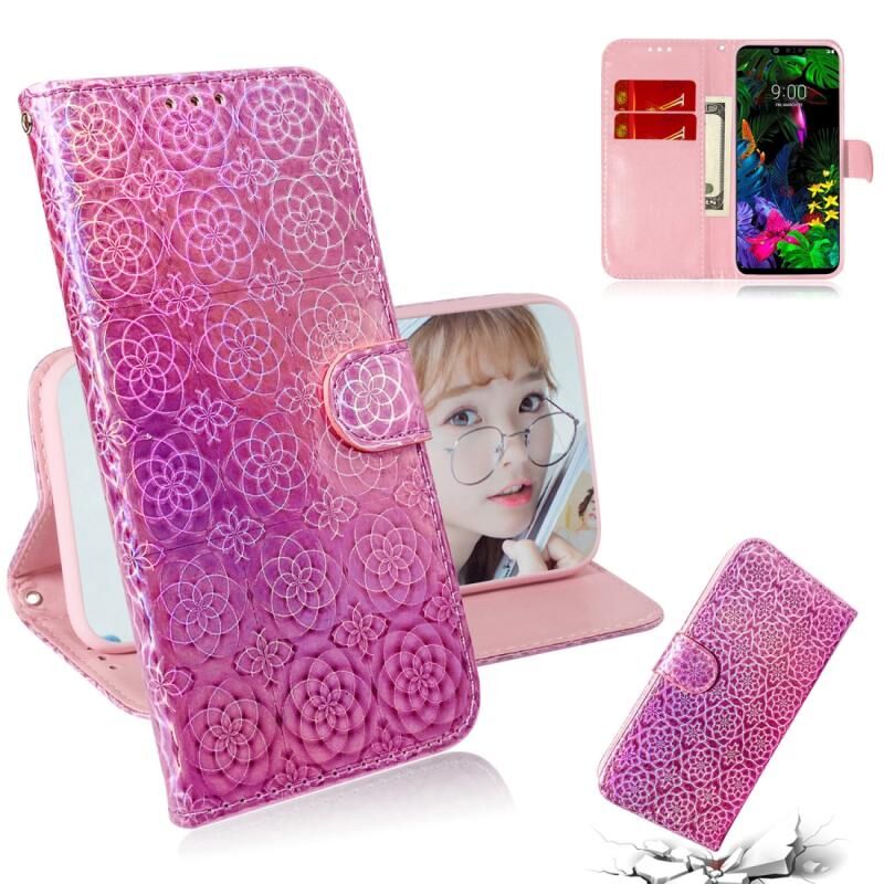 For LG G8 ThinQ Solid Color Colorful Magnetic Buckle Horizontal Flip PU Leather Case with Holder & Card Slots & Wallet & Lanyard(Pink)