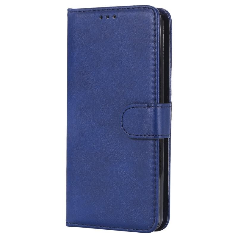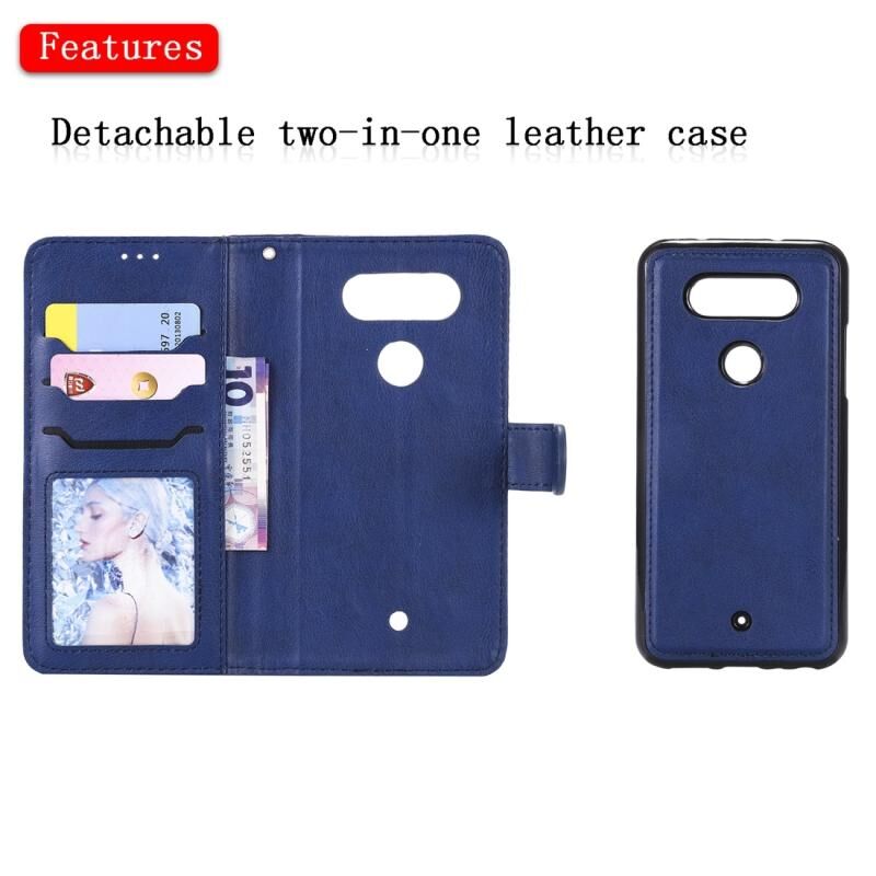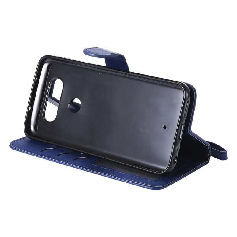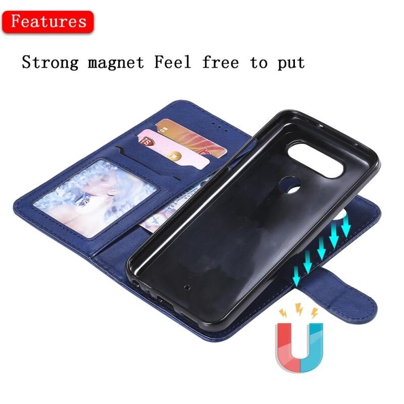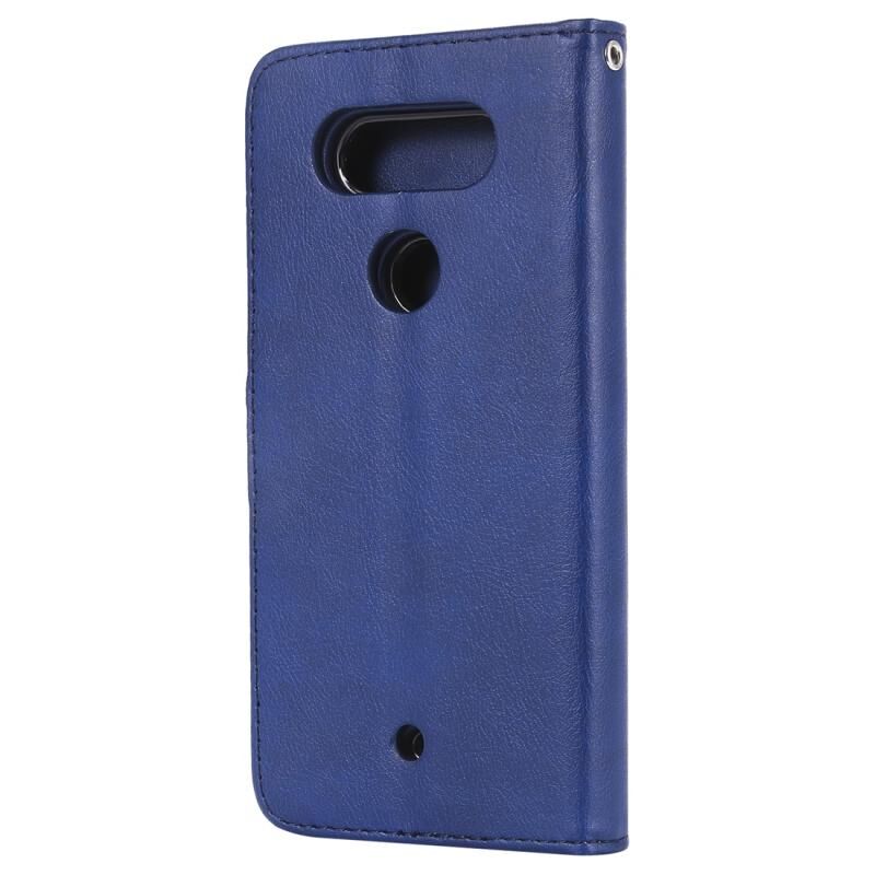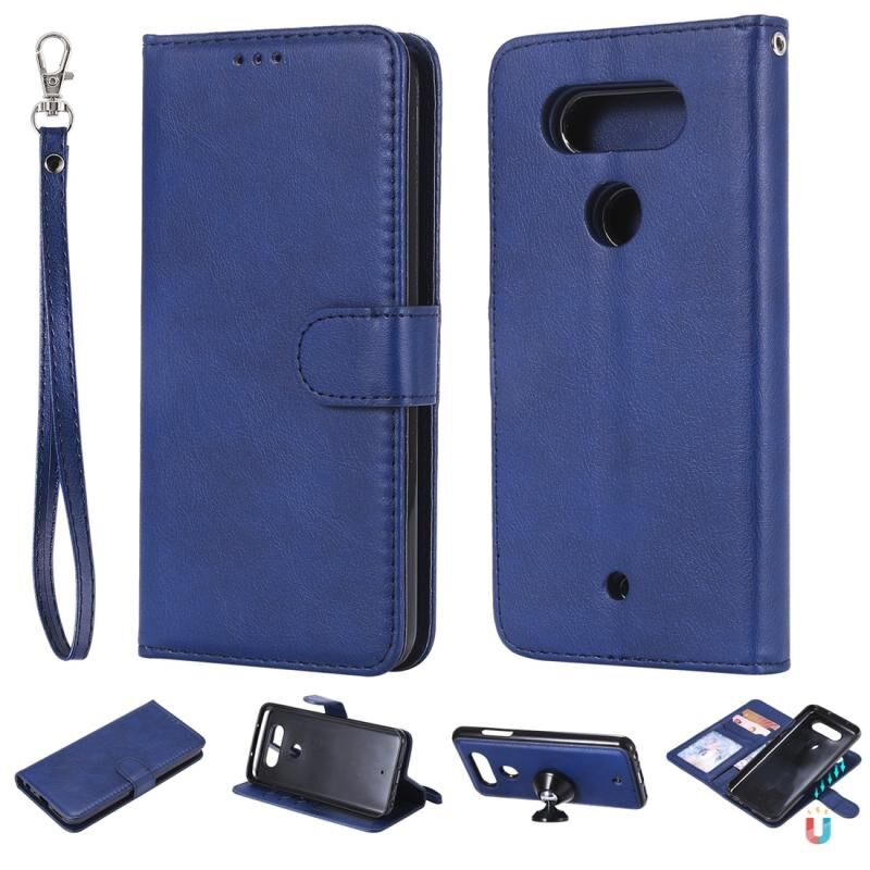 Για LG G8 ThinQ Αμιγές χρώμα Οριζόντια Flip προστατευτική θήκη με θήκη & υποδοχές για κάρτες & πορτοφόλι & κορνίζα & κορδόνι (μπλε)