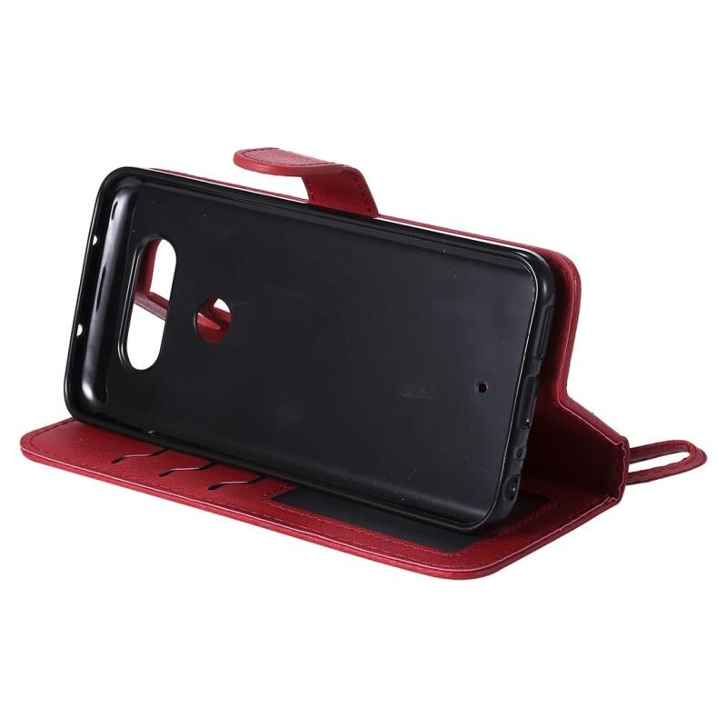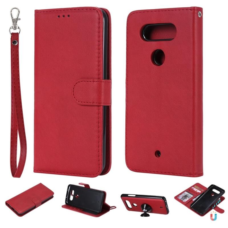 Για το LG G8 ThinQ Αμιγές χρώμα Οριζόντια Flip προστατευτική θήκη με υποδοχές για κάρτες και πορτοφόλι, κορνίζα και κορδόνι (κόκκινο)