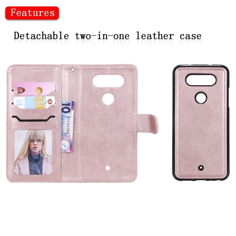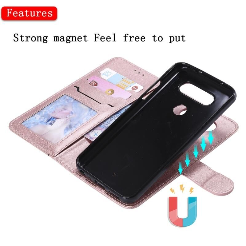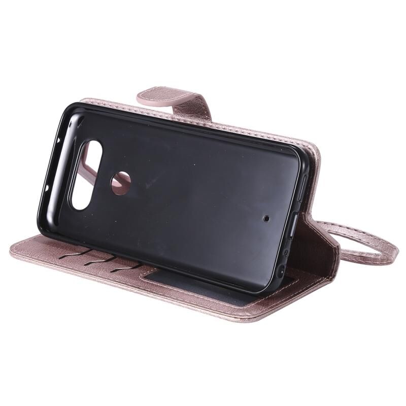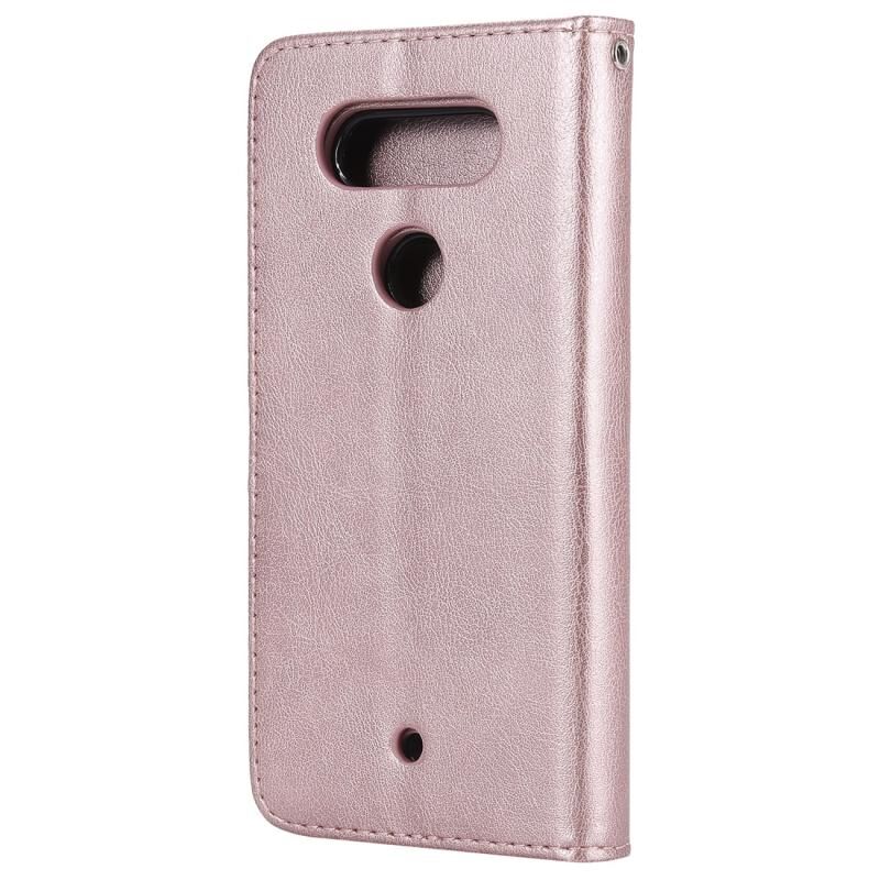 Για το LG G8 ThinQ Αμιγές χρώμα Οριζόντια Flip Προστατευτική θήκη με θήκη & υποδοχές για κάρτες & πορτοφόλι & πλαίσιο φωτογραφιών & κορδόνι (ροζ χρυσό)