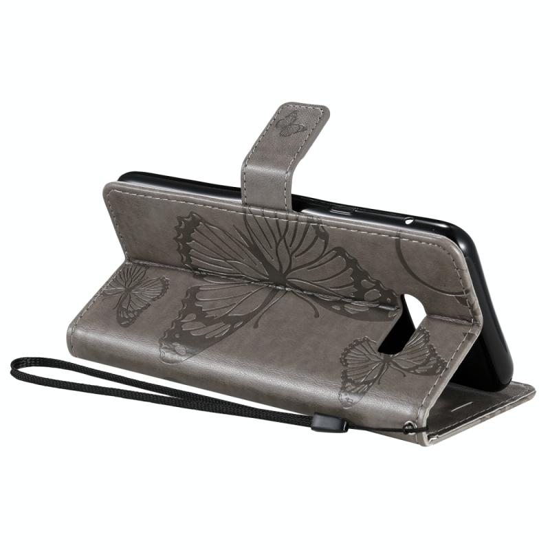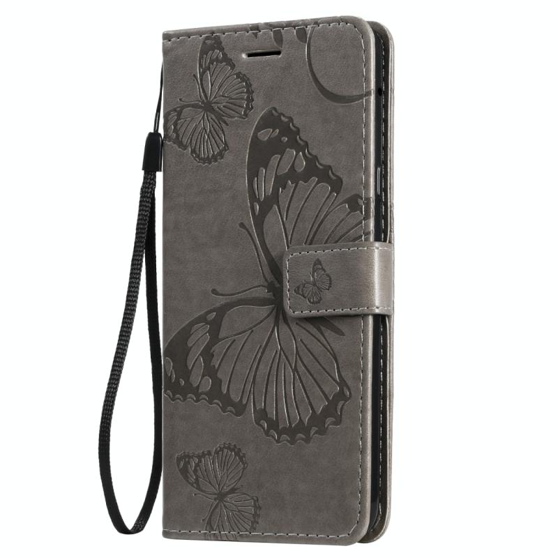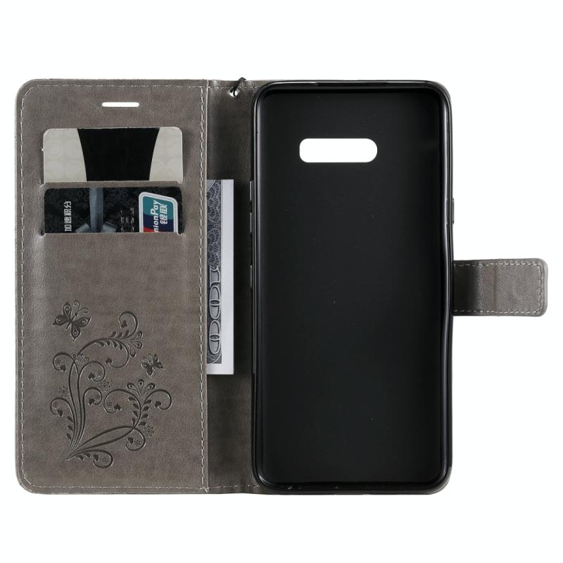 Θήκη για LG G8X με εκτυπωμένο σχέδιο πεταλούδας, οριζόντια αναδίπλωση από δερματίνη PU με βάση στήριξης, θήκες για κάρτες, πορτοφόλι & λουρί (Γκρι)