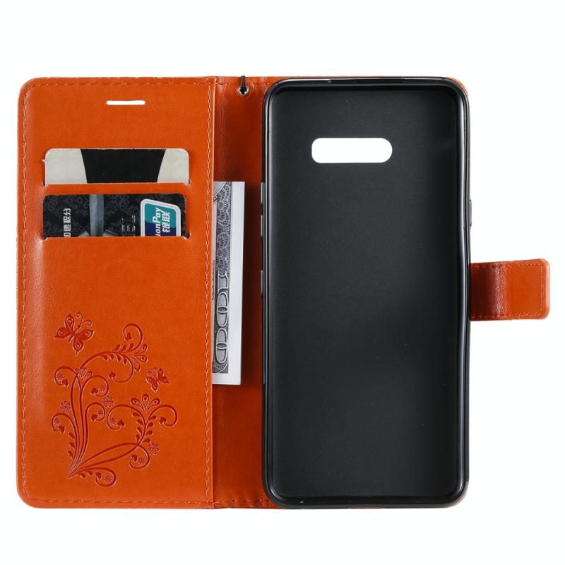 Θήκη για LG G8X με εκτυπωμένο σχέδιο πεταλούδας, οριζόντια αναδίπλωση από δερματίνη PU με βάση στήριξης, θήκες για κάρτες, πορτοφόλι & λουρί (Πορτοκαλί)