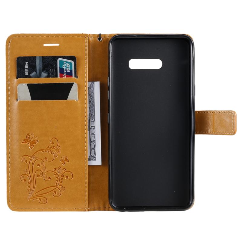 Θήκη για LG G8X με εκτυπωμένο σχέδιο πεταλούδας, οριζόντια αναδίπλωση από δερματίνη PU με βάση στήριξης, θήκες για κάρτες, πορτοφόλι & λουρί (Κίτρινο)