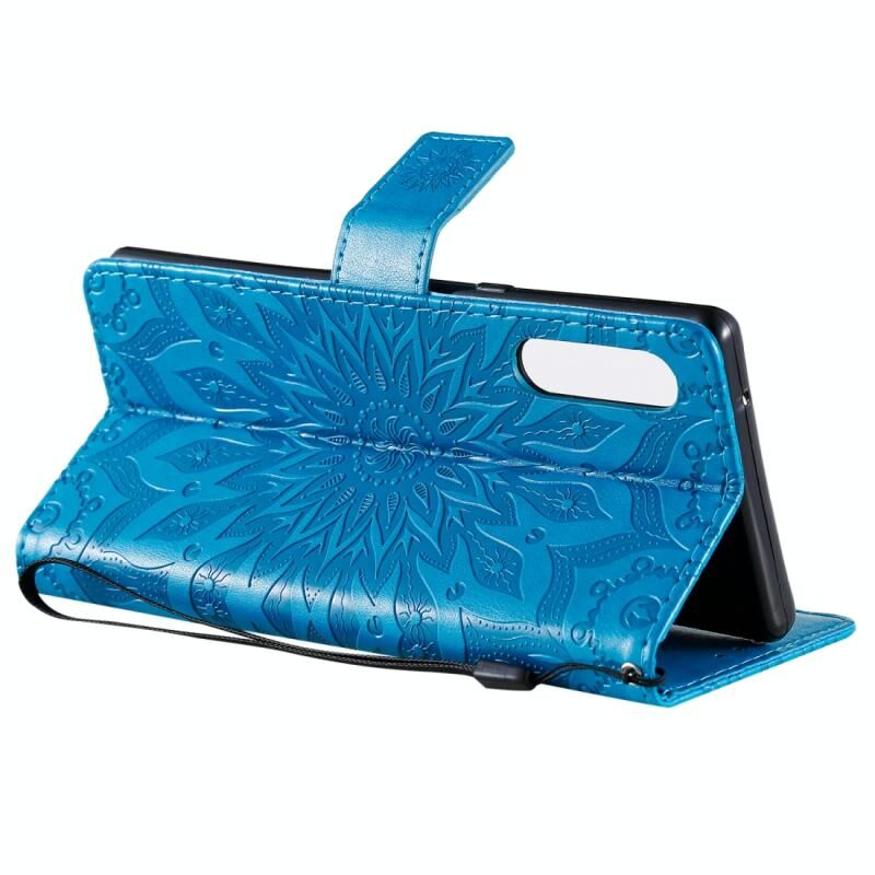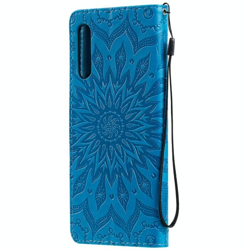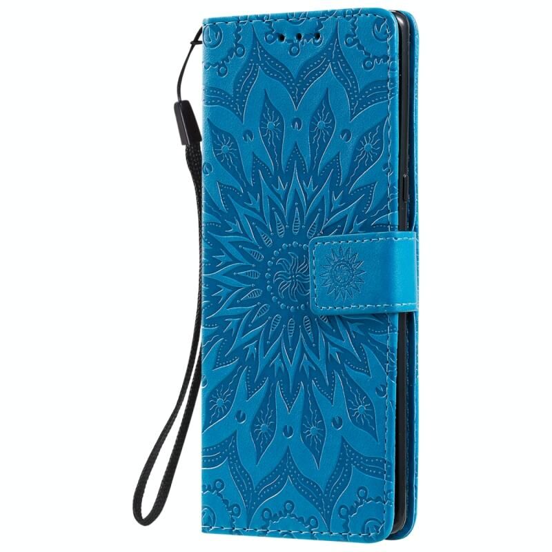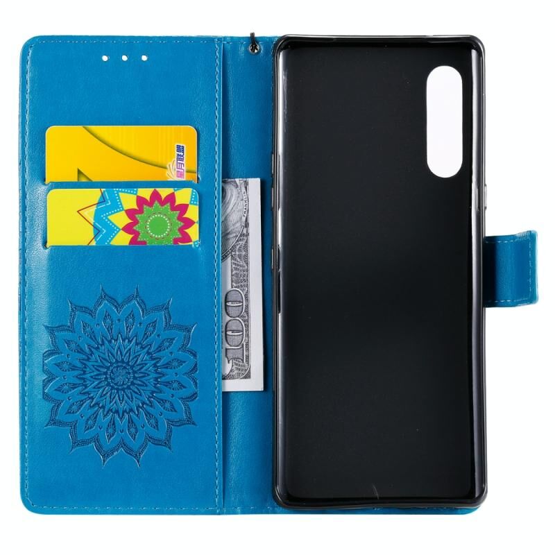 Για LG G9 Πιεσμένη εκτύπωση ηλιοτρόπιο μοτίβο οριζόντια Flip PU δέρμα θήκη κάτοχος & υποδοχές για κάρτες & πορτοφόλι & κορδόνι (μπλε)