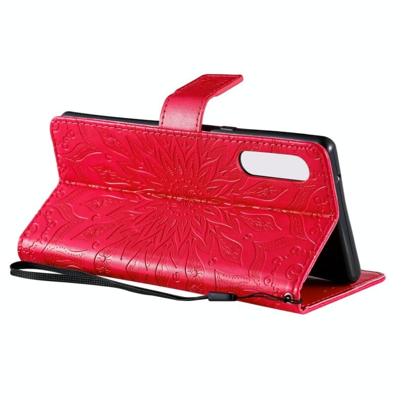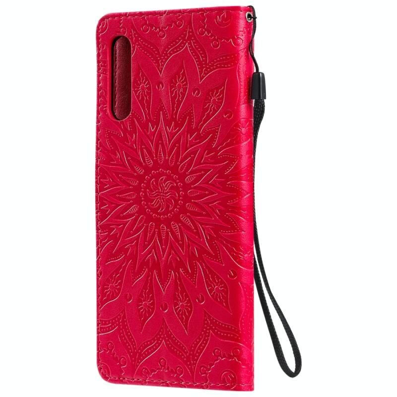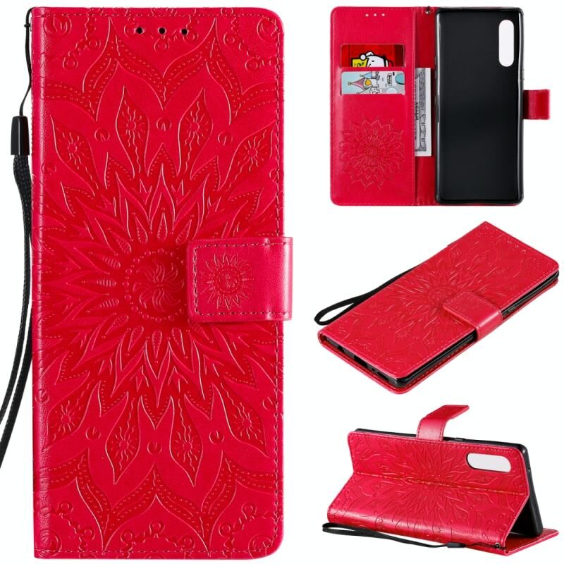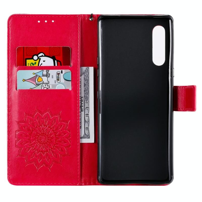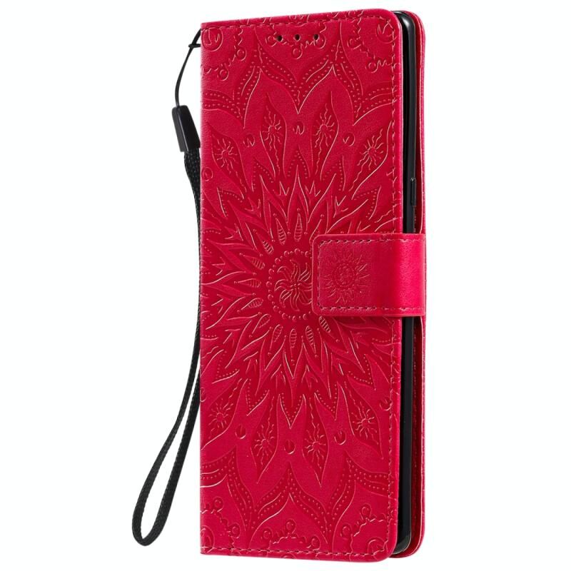 Για LG G9 Πιεσμένη εκτύπωση ηλιοτρόπιο μοτίβο οριζόντια Flip PU δέρμα θήκη κάτοχος & υποδοχές για κάρτες & πορτοφόλι & κορδόνι (κόκκινο)