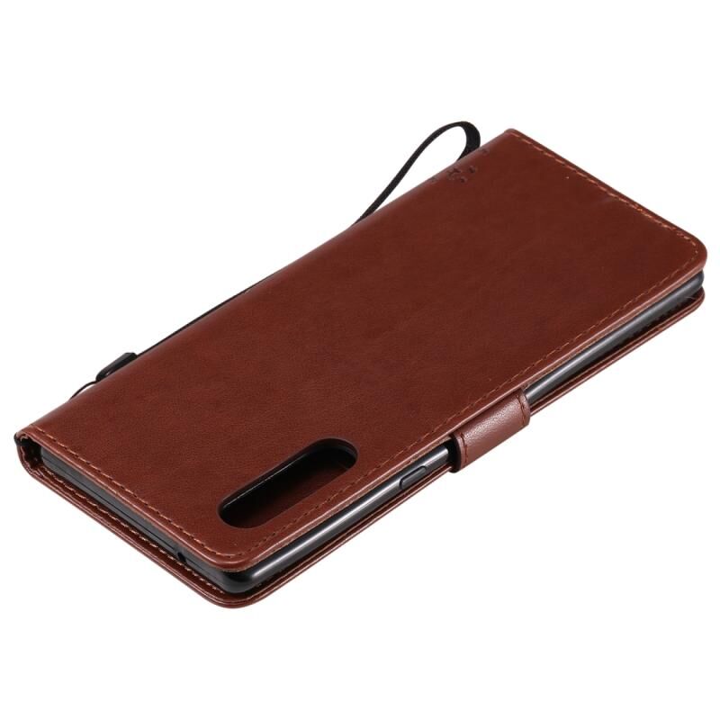 Θήκη δέρματος οριζόντιας αναδίπλωσης για LG G9 με ανάγλυφο σχέδιο Δέντρου & Γάτας, με βάση στήριξης & θήκες καρτών & πορτοφόλι & κορδόνι (Καφέ)