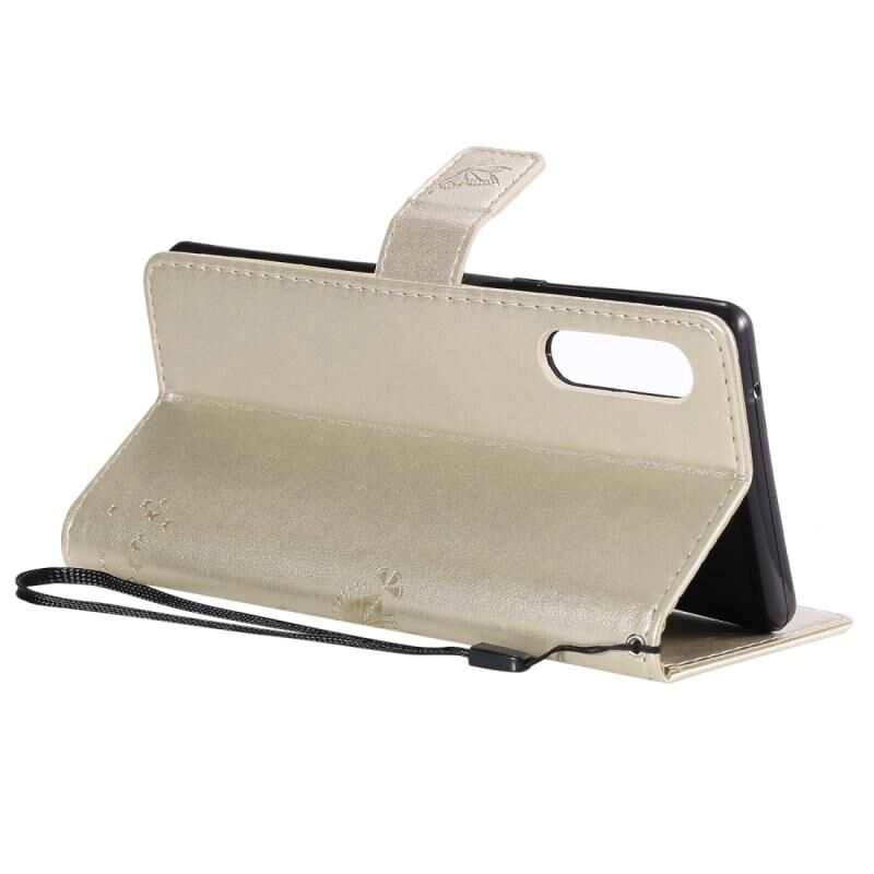Θήκη δέρματος οριζόντιας αναδίπλωσης για LG G9 με ανάγλυφο σχέδιο Δέντρου & Γάτας, με βάση στήριξης & θήκες καρτών & πορτοφόλι & κορδόνι (Χρυσός)