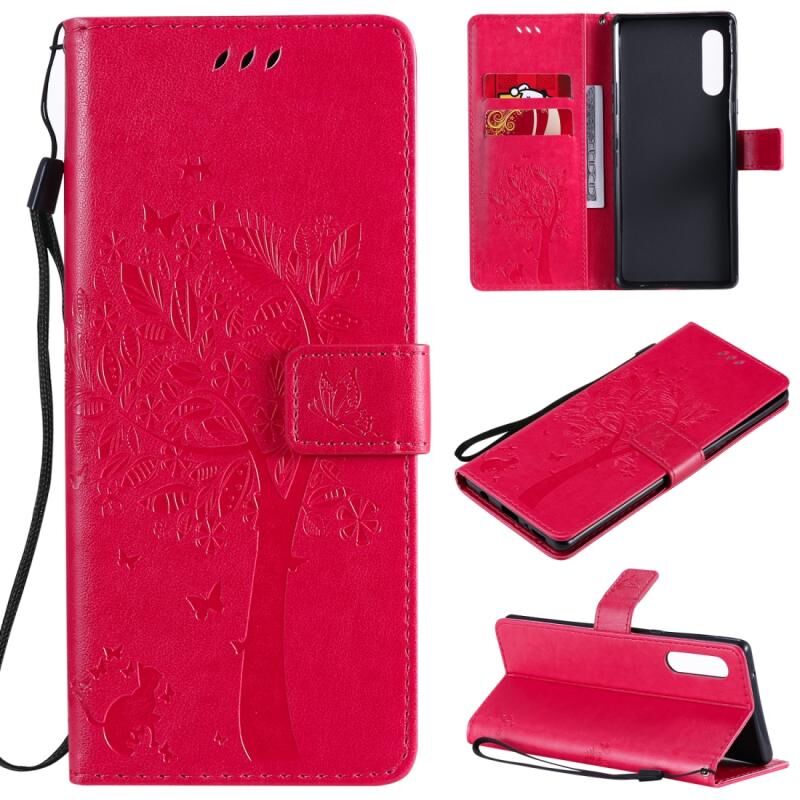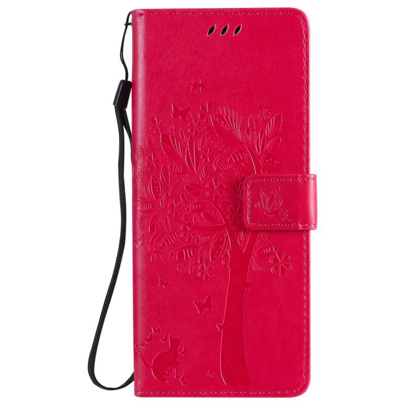 Θήκη δέρματος οριζόντιας αναδίπλωσης για LG G9 με ανάγλυφο σχέδιο Δέντρου & Γάτας, με βάση στήριξης & θήκες καρτών & πορτοφόλι & κορδόνι (Πράσινο)