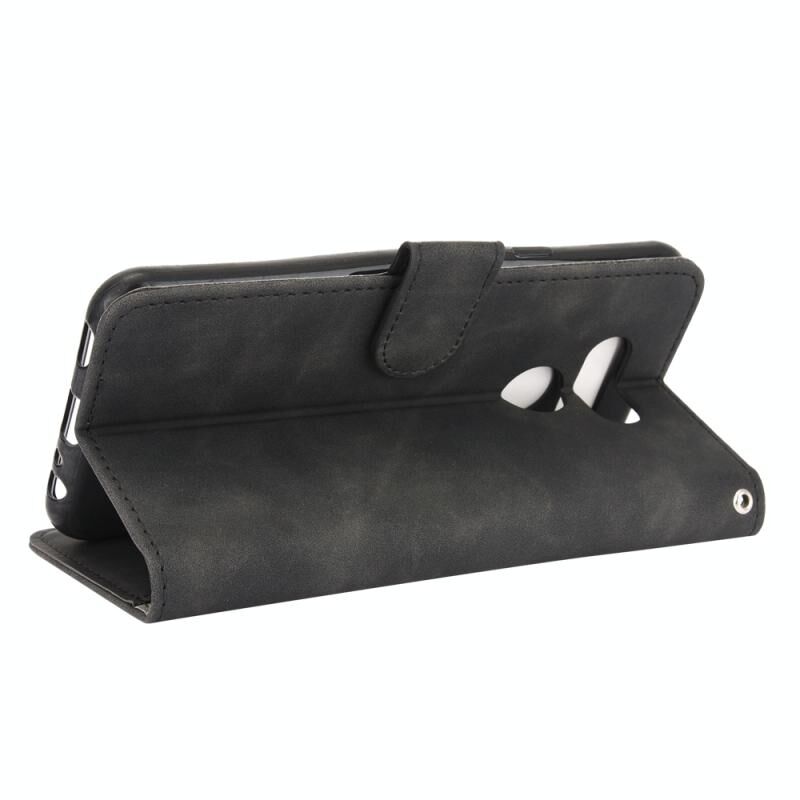 Για LG Harmony 4 Solid Color Skin Feel μαγνητική πόρπη οριζόντια Flip μοσχάρι υφή PU δέρμα υπόθεση με κάτοχο & υποδοχές για κάρτες & πορτοφόλι (μαύρο)