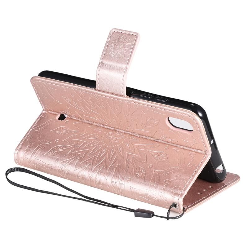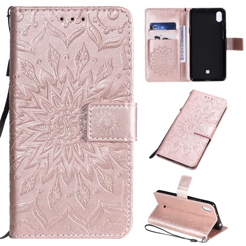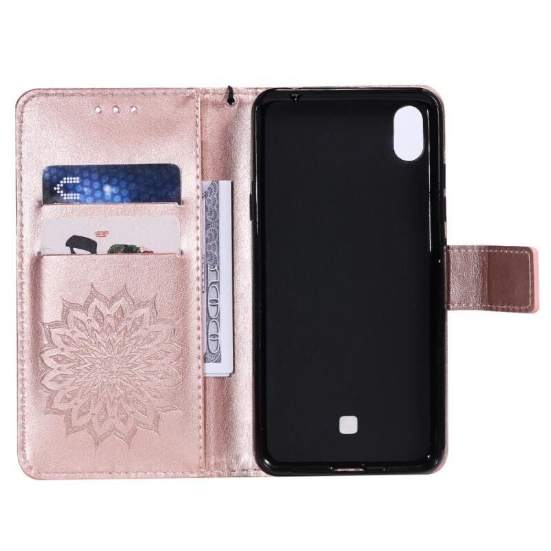 Θήκη για LG K20 (2019) με σχέδιο ηλιοτρόπιου, οριζόντια, από δερματίνη PU με εκτύπωση, με βάση στήριξης, θήκες για κάρτες, πορτοφόλι & λουρί (Πράσινο)