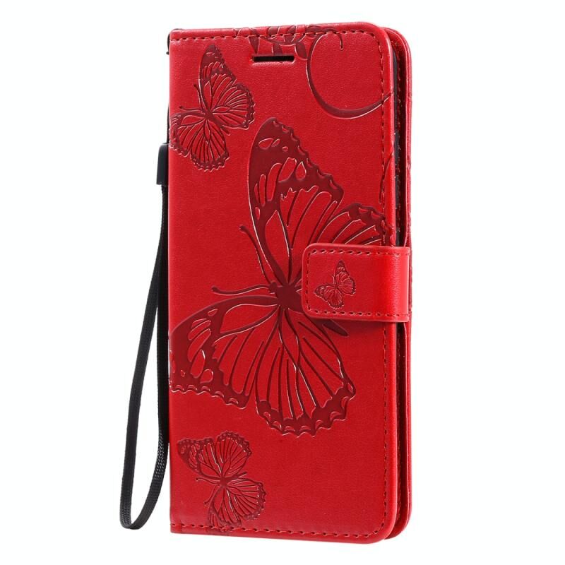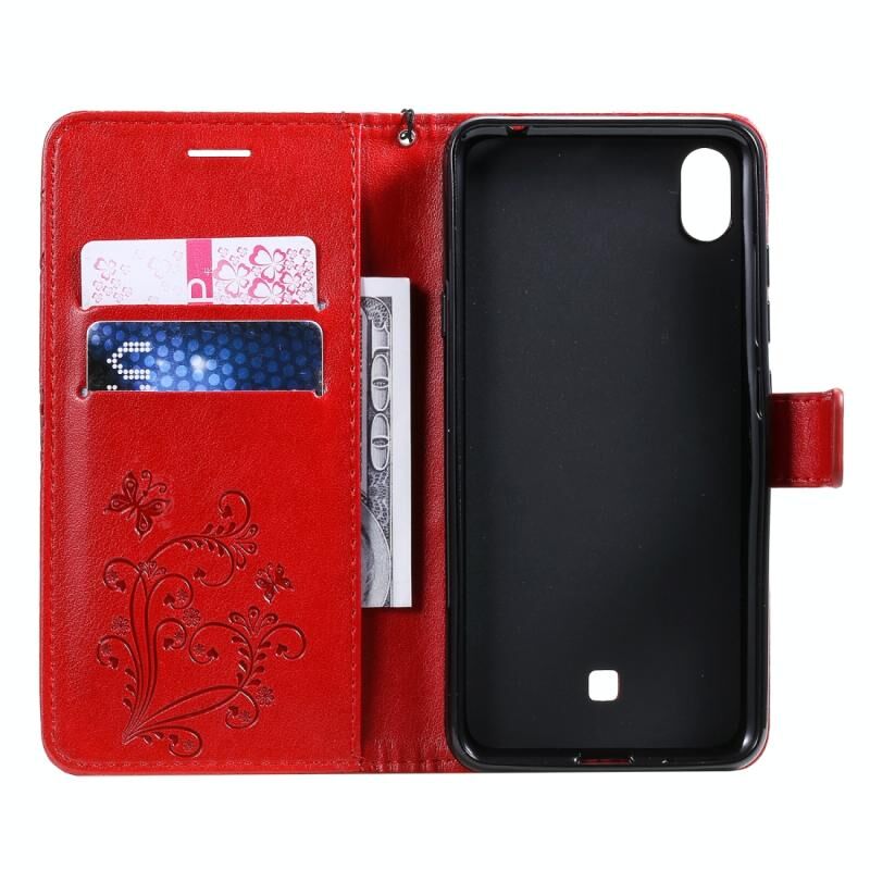 Θήκη για LG K20 με ανάγλυφο σχέδιο πεταλούδας, οριζόντια, από δερματίνη PU με βάση στήριξης, θήκες για κάρτες, πορτοφόλι & λουρί (Κόκκινο)