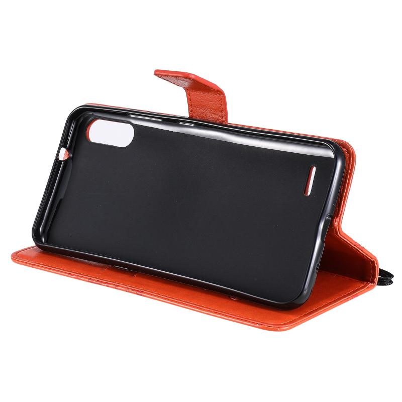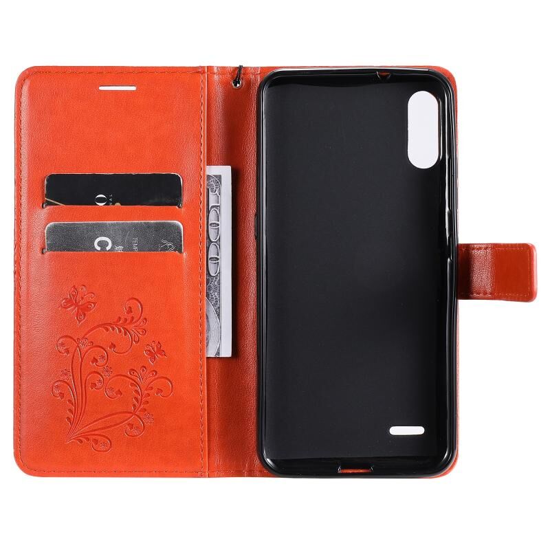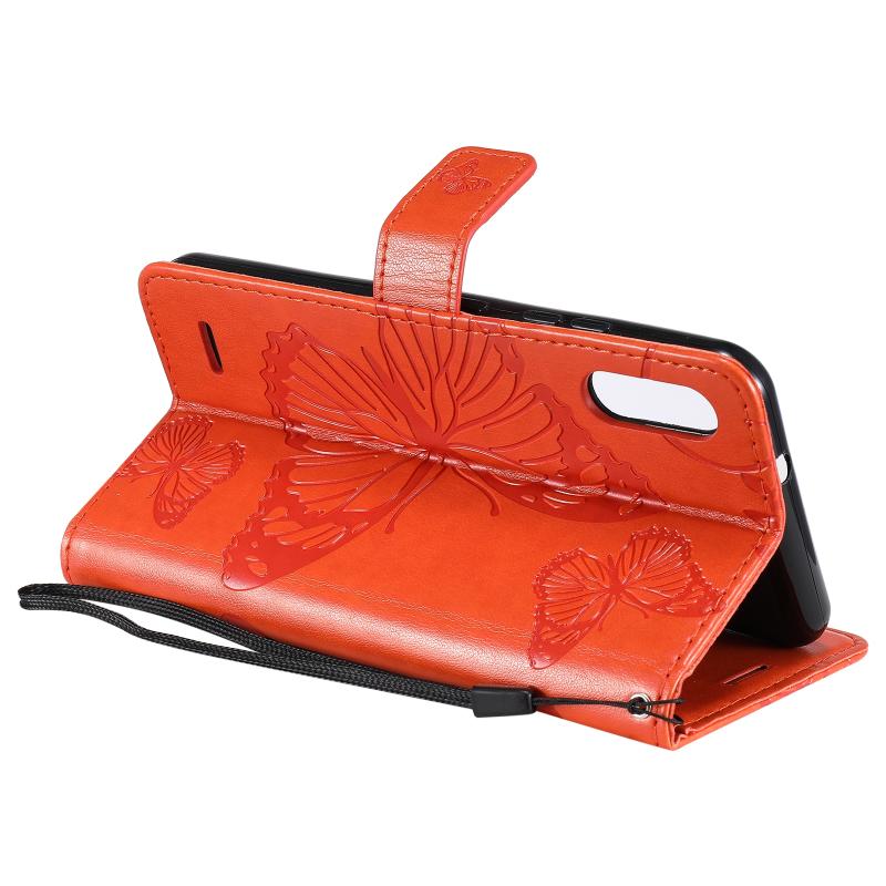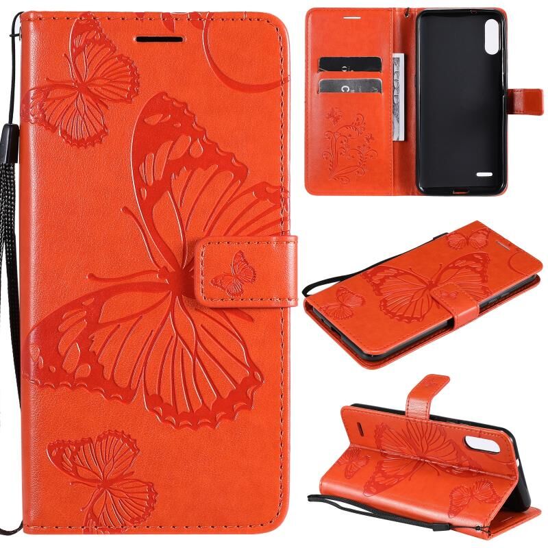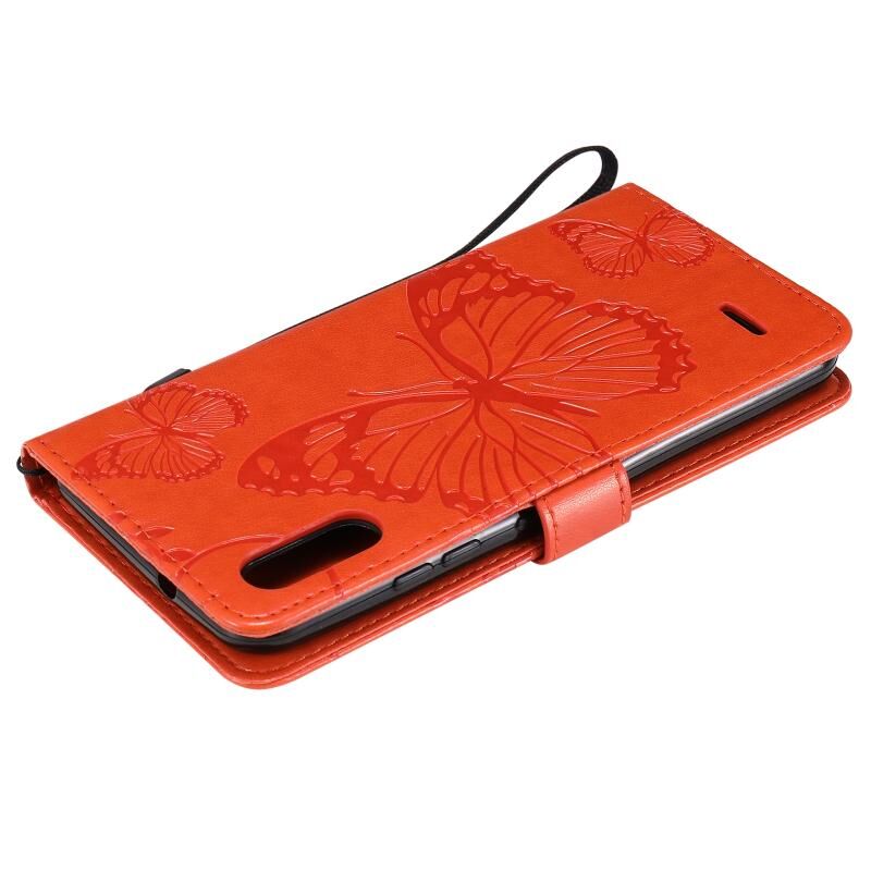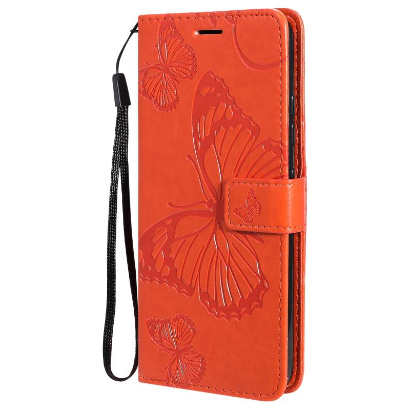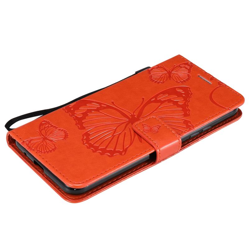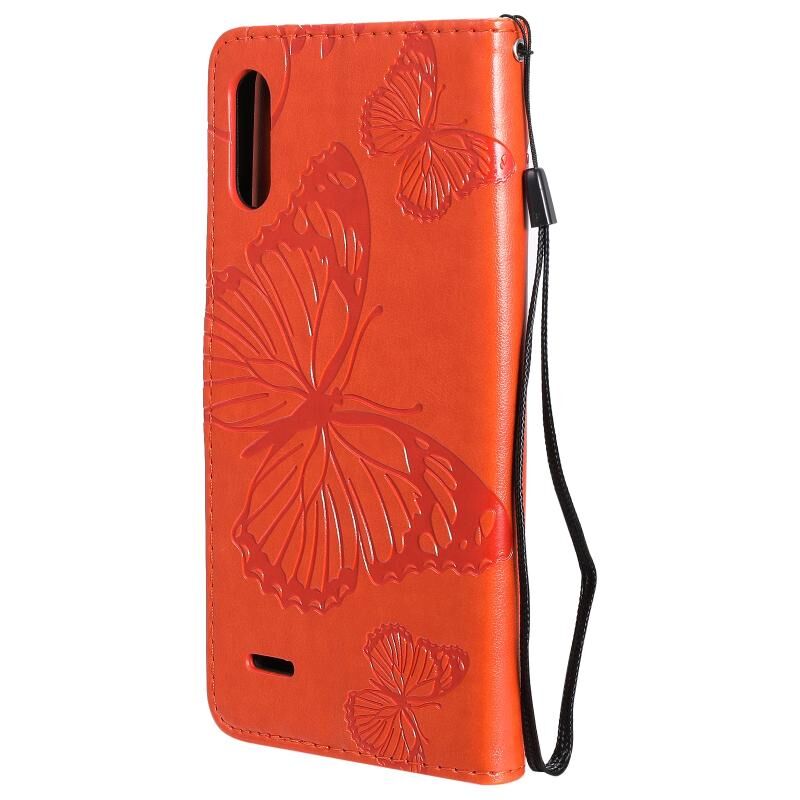 Θήκη δέρματος οριζόντιας αναδίπλωσης με ανάγλυφο σχέδιο 3D πεταλούδων για LG K22 / K22 Plus με βάση στήριξης & υποδοχή κάρτας & πορτοφόλι (Πορτοκαλί)