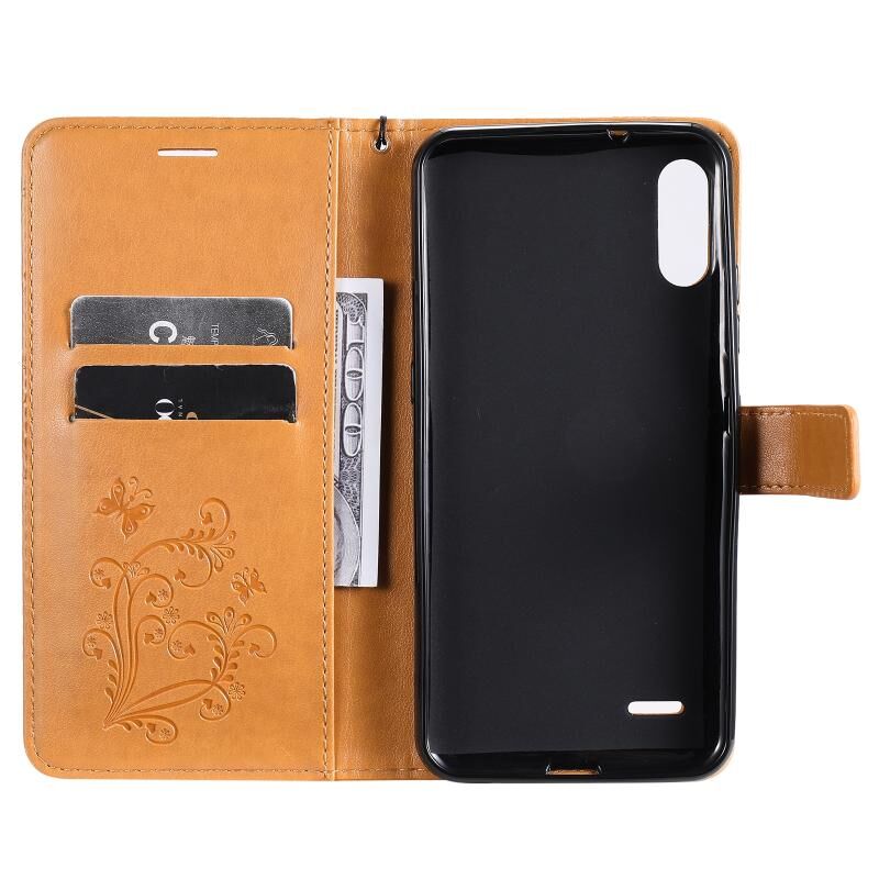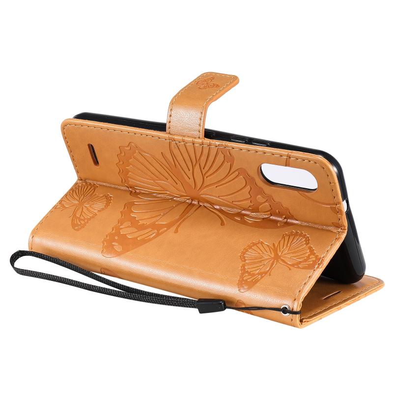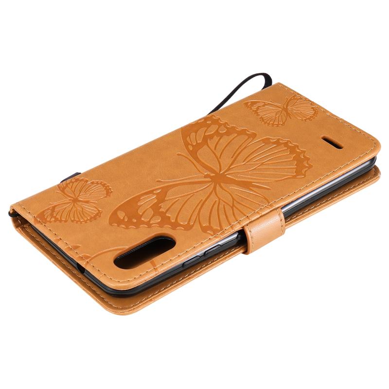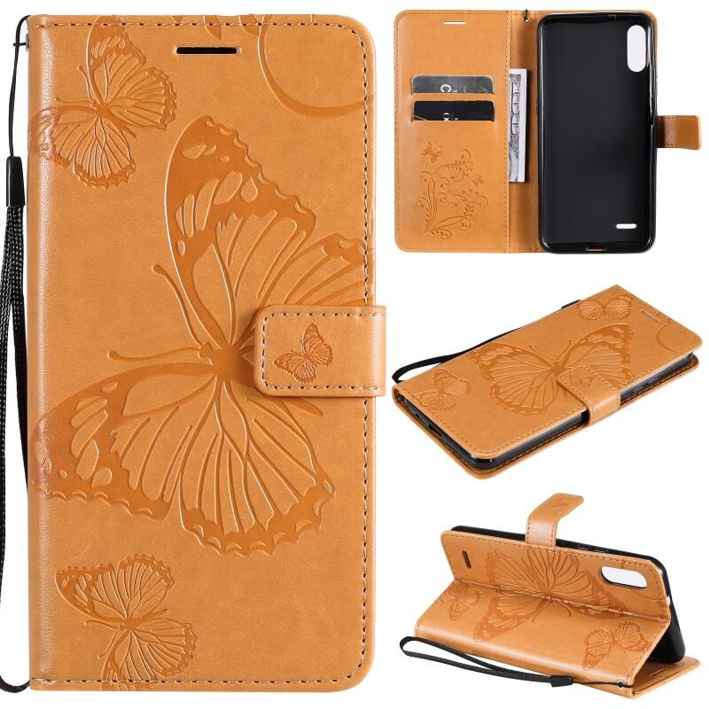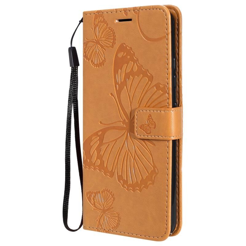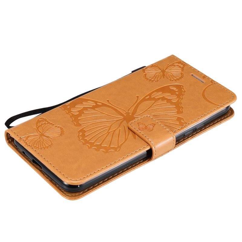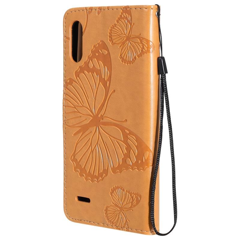 Θήκη δέρματος οριζόντιας αναδίπλωσης με ανάγλυφο σχέδιο 3D πεταλούδων για LG K22 / K22 Plus με βάση στήριξης & υποδοχή κάρτας & πορτοφόλι (Κίτρινο)