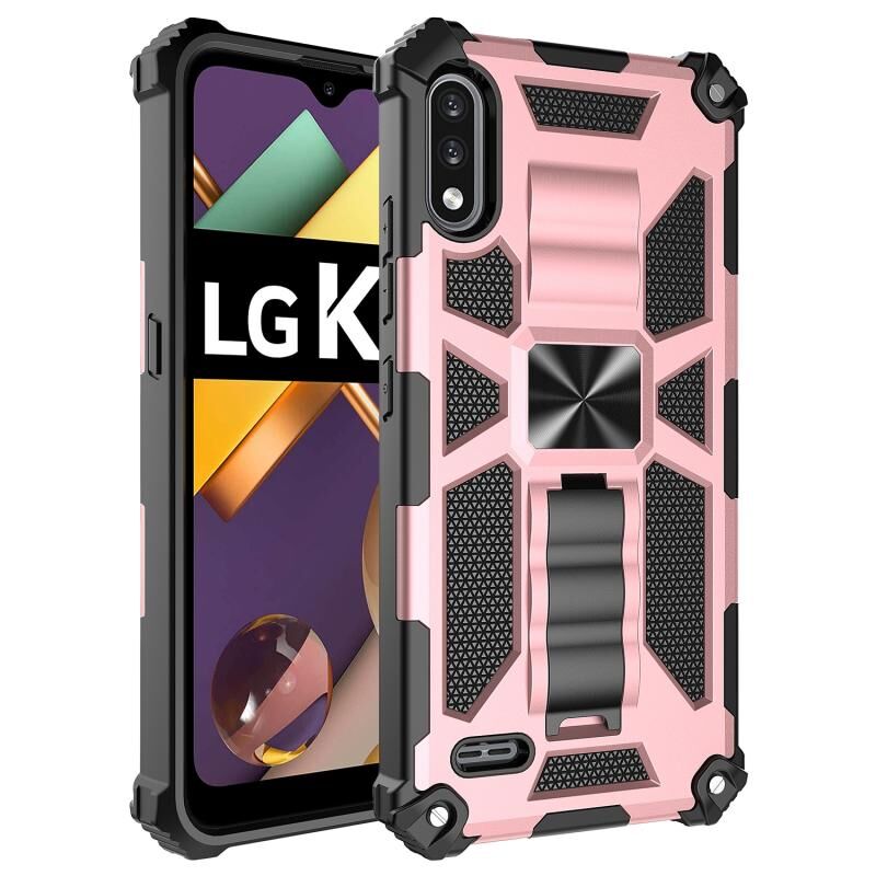 Για το LG K22 Shockproof TPU + PC Μαγνητική προστατευτική θήκη με θήκη (Rose Gold)