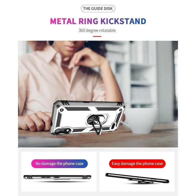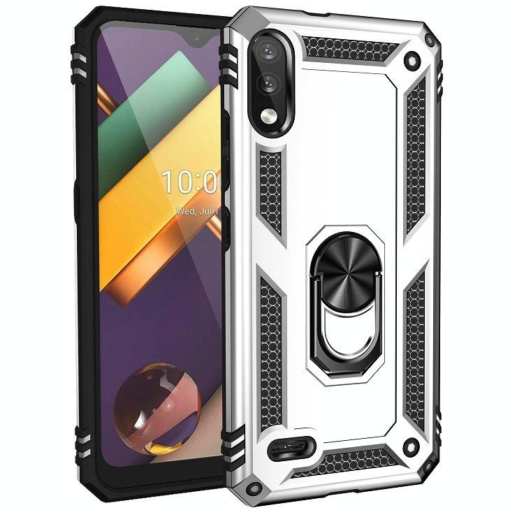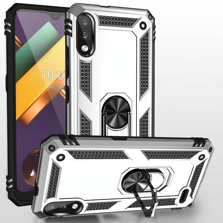 Θήκη προστασίας για LG K22 από TPU + PC ανθεκτική στις κρούσεις με περιστρεφόμενη βάση 360 μοιρών (Ασημί)