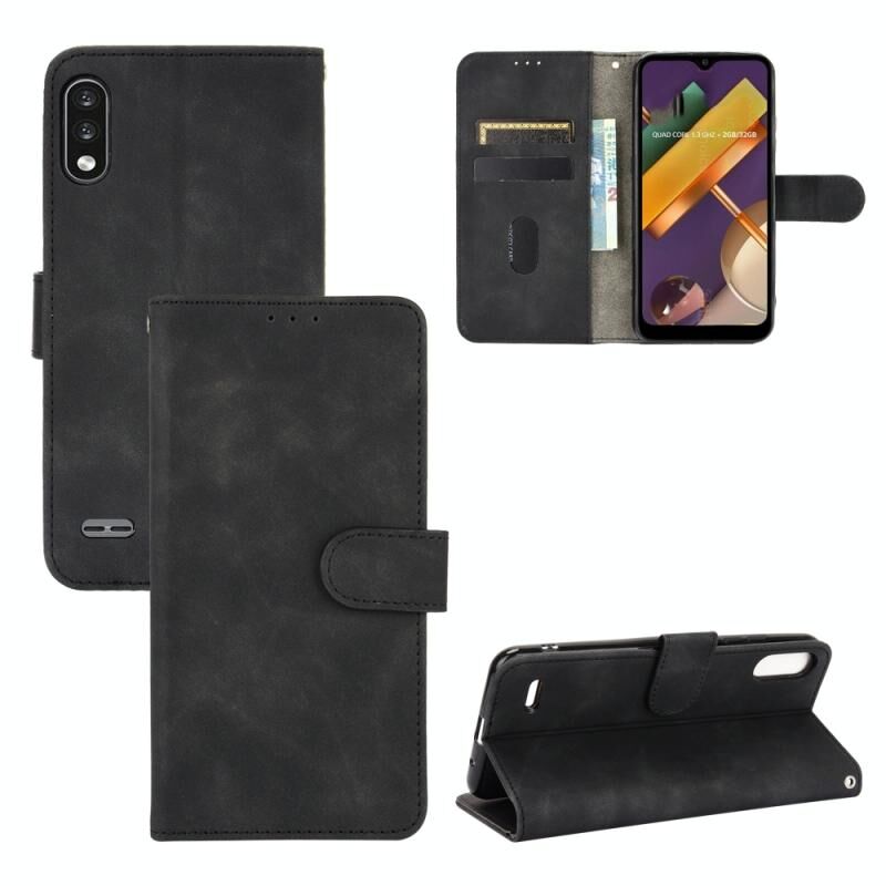 Για το LG K22 Solid Color Skin Feel μαγνητική πόρπη οριζόντια Flip μοσχάρι υφή PU δέρμα υπόθεση με κάτοχο & υποδοχές για κάρτες & πορτοφόλι (μαύρο)
