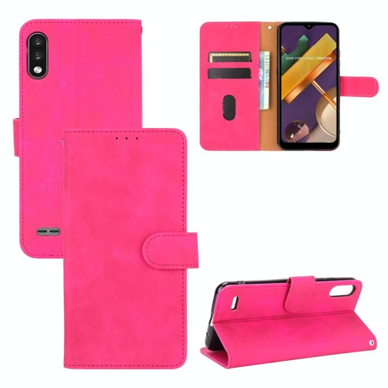Για LG K22 Solid Color Skin Feel μαγνητική πόρπη οριζόντια Flip μοσχάρι υφή PU δέρμα υπόθεση με κάτοχο & υποδοχές για κάρτες & πορτοφόλι (Rose Red)