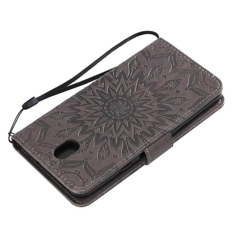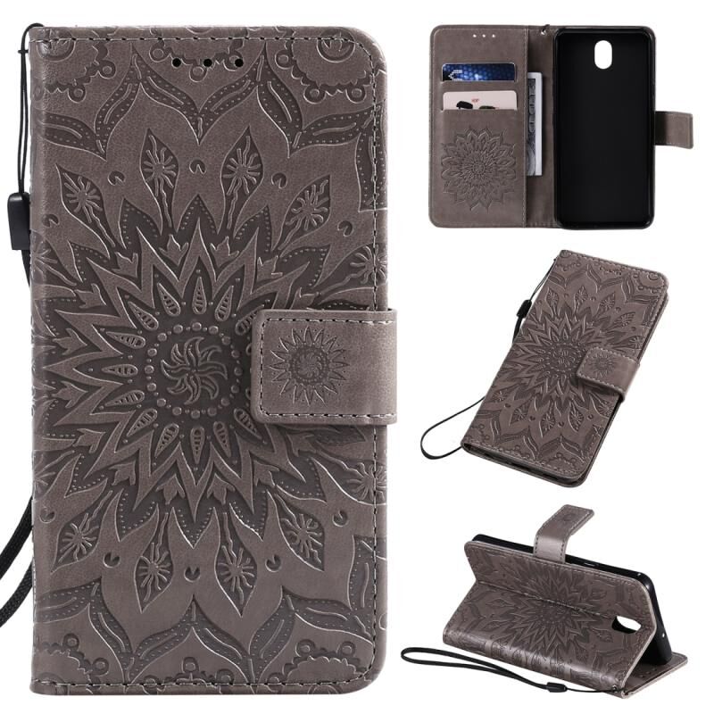 Θήκη για LG K30 (2019) με εκτυπωμένο σχέδιο ηλιοτρόπιου, οριζόντια αναδιπλούμενη από δερματίνη PU με βάση στήριξης, θήκες για κάρτες, πορτοφόλι & λουρί (Γκρι)
