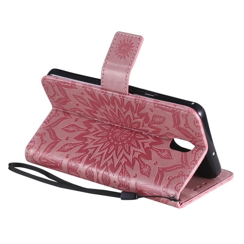 Θήκη για LG K30 (2019) με εκτυπωμένο σχέδιο ηλιοτρόπιου, οριζόντια αναδιπλούμενη από δερματίνη PU με βάση στήριξης, θήκες για κάρτες, πορτοφόλι & λουρί (Γκρι)