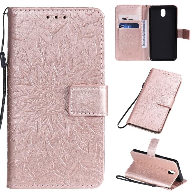 Θήκη για LG K30 (2019) με εκτυπωμένο σχέδιο ηλίανθου, οριζόντια, από δερματίνη PU με βάση στήριξης, θήκες για κάρτες, πορτοφόλι & κορδόνι (Χρυσό Ρόδι)