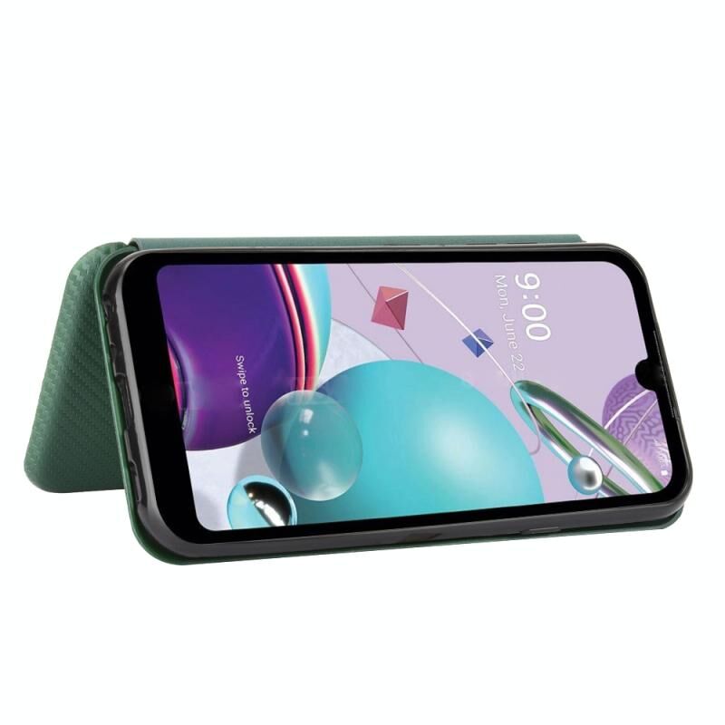 Για LG K31 Carbon Fiber υφή οριζόντια Flip TPU + PC + PU δέρμα υπόθεση με υποδοχή κάρτας (πράσινο)