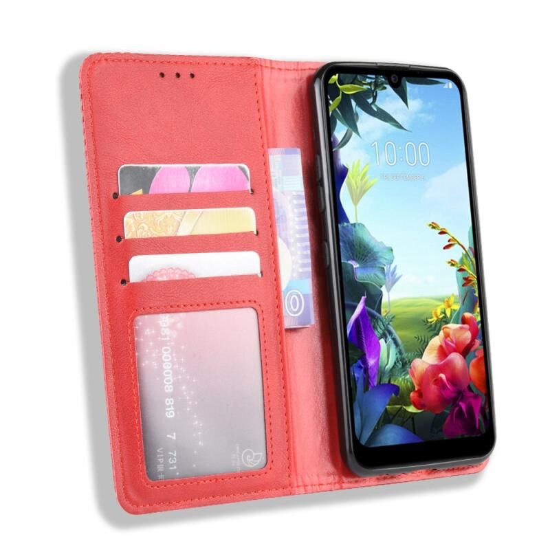 Θήκη δέρματος οριζόντιας αναδίπλωσης με μαγνητικό κούμπωμα, υφή Crazy Horse Retro για LG K40S, με βάση στήριξης, θήκες καρτών & κορνίζα φωτογραφιών (Μαύρο)