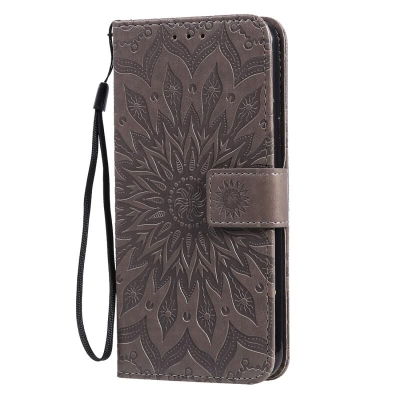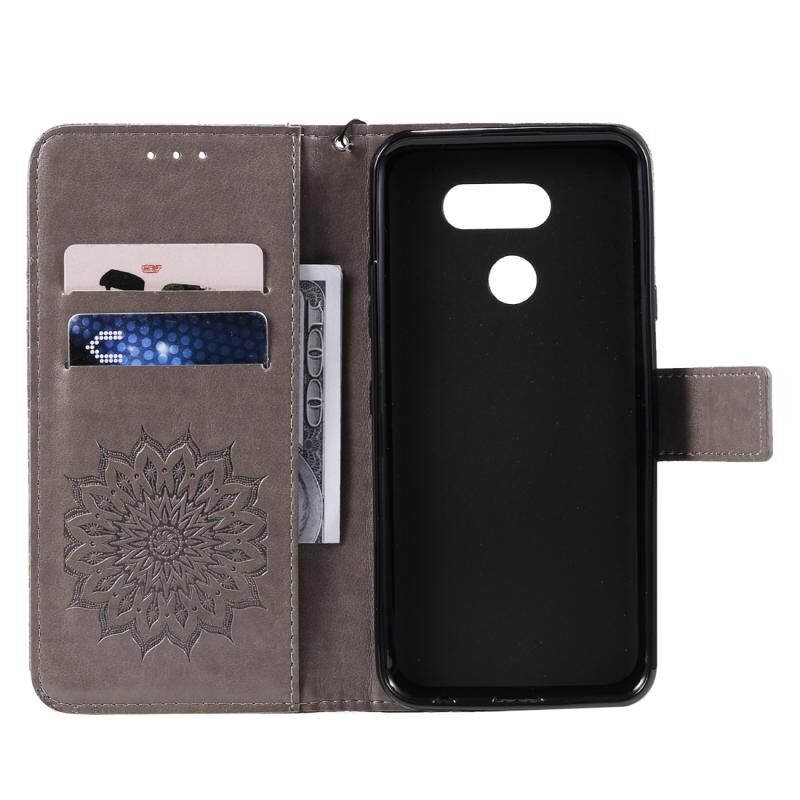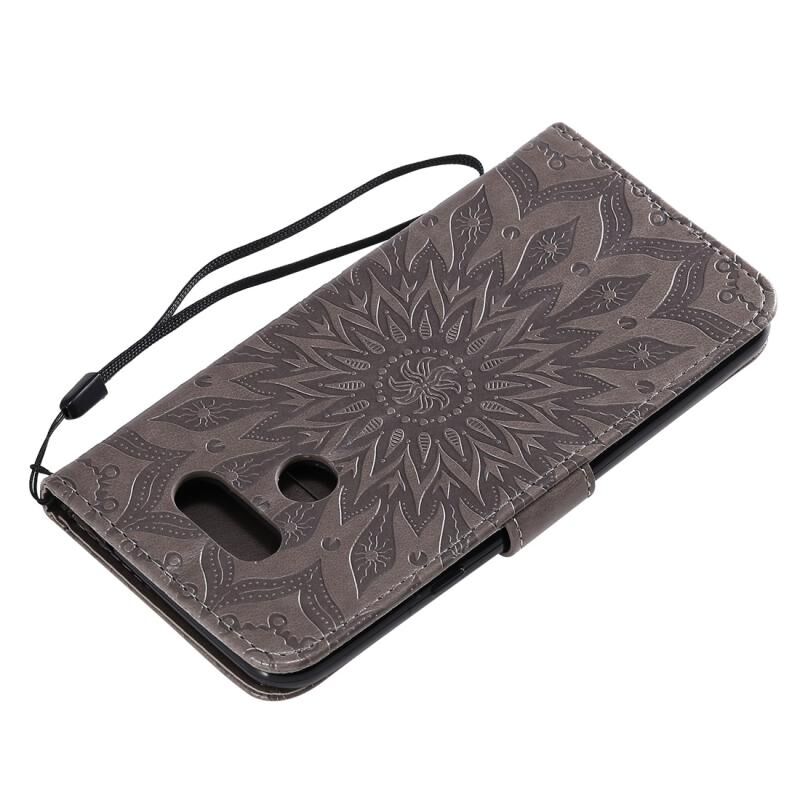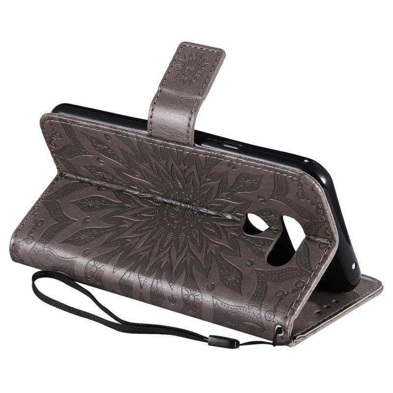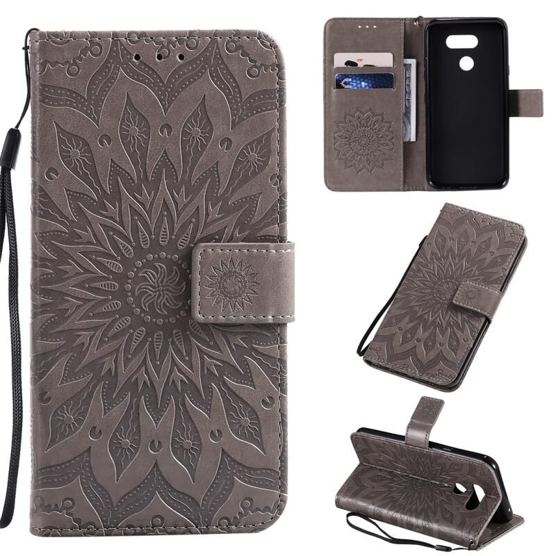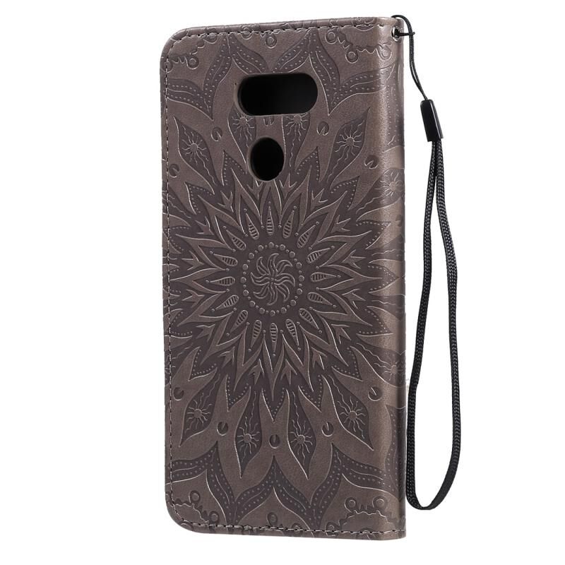 Θήκη για LG K40S με εκτυπωμένο σχέδιο ηλιοτρόπιας, οριζόντια, από δερματίνη PU με βάση στήριξης, θήκες για κάρτες, πορτοφόλι & λουρί (Γκρι)