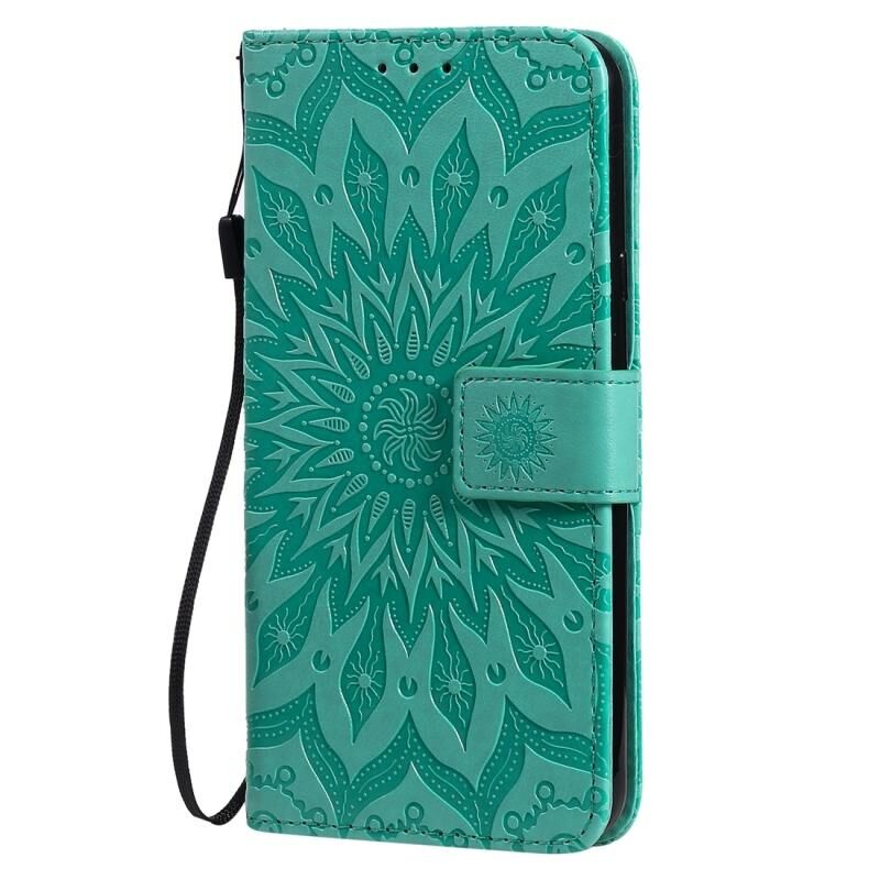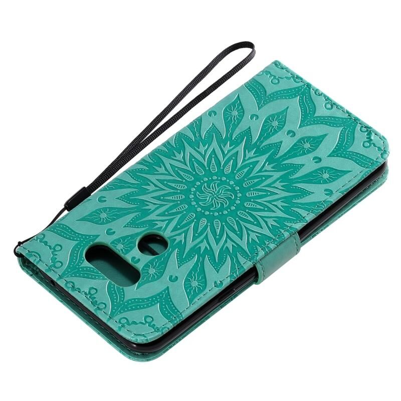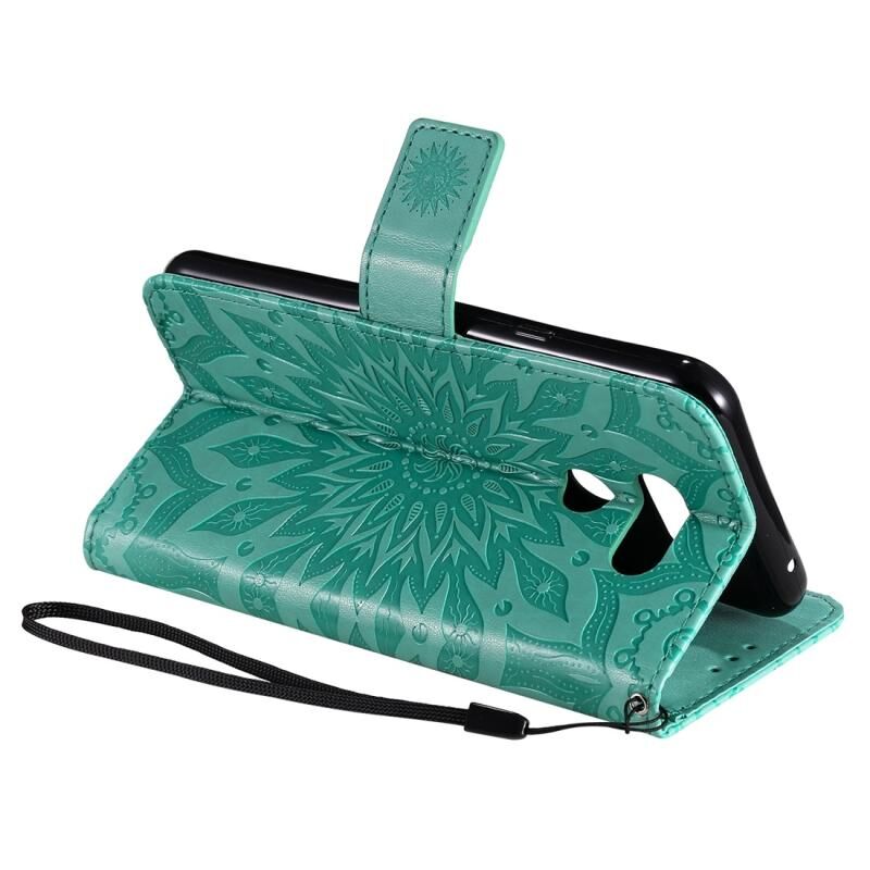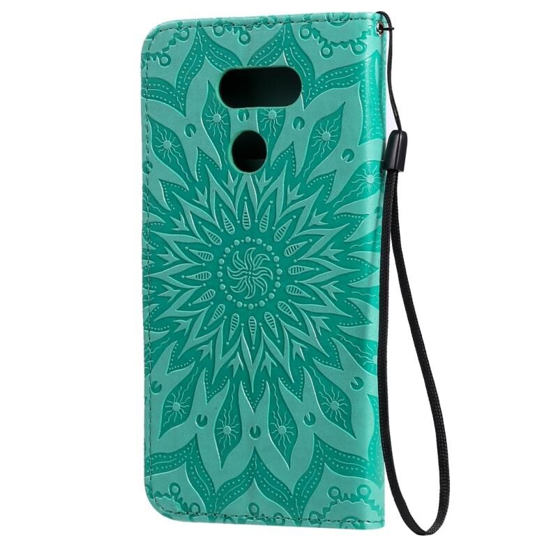 For LG K40S Pressed Printing Sunflower Pattern Horizontal Flip PU Leather Case with Holder & Card Slots & Wallet & Lanyard(Green)