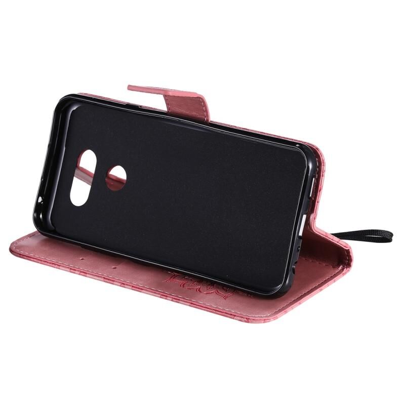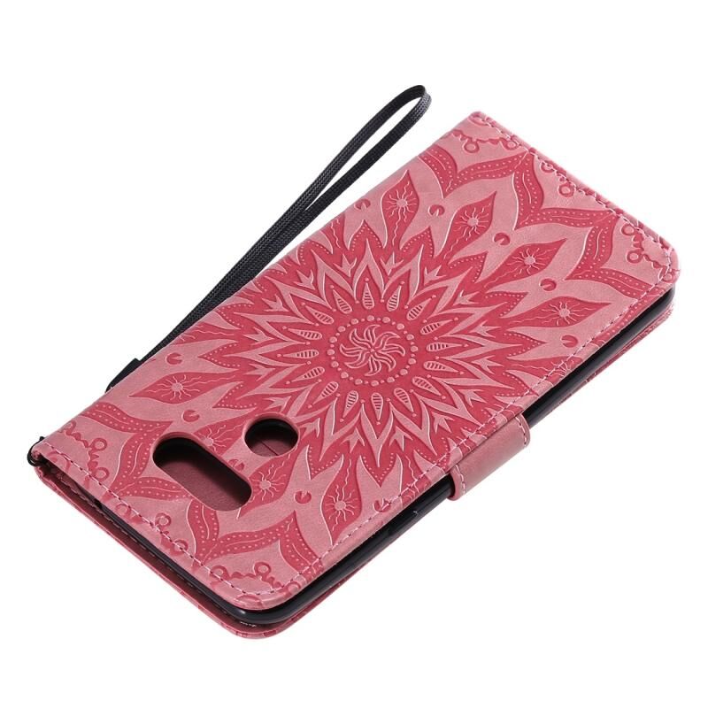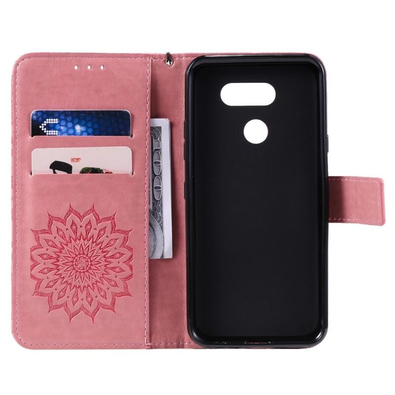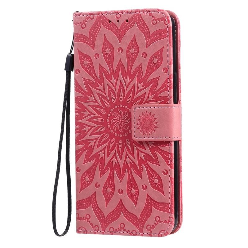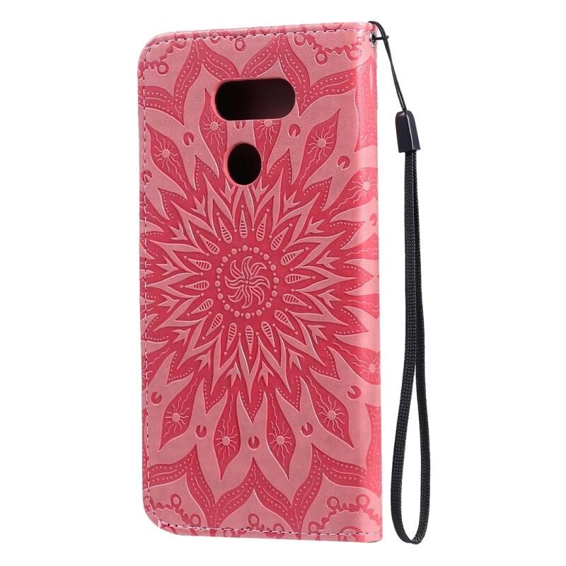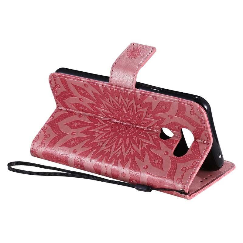 For LG K40S Pressed Printing Sunflower Pattern Horizontal Flip PU Leather Case with Holder & Card Slots & Wallet & Lanyard(Pink)