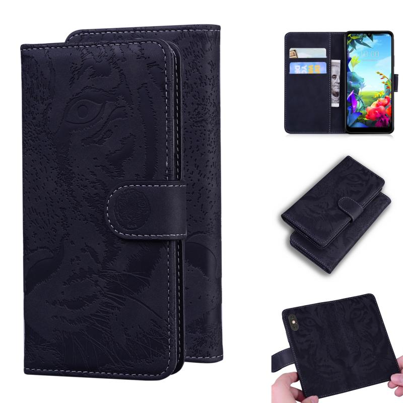 For LG K40S Tiger Embossing Pattern Horizontal Flip Leather Case with Holder & Card Slots & Wallet(Black)