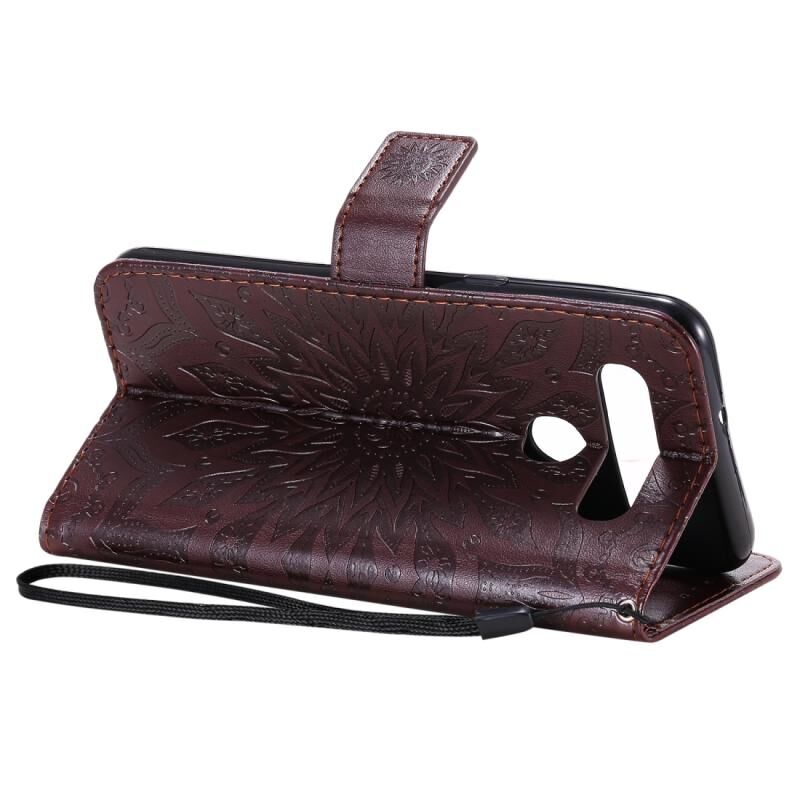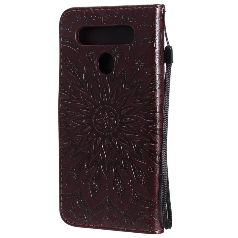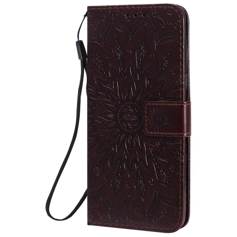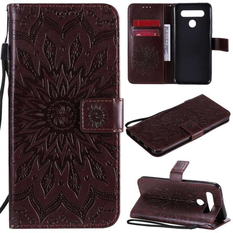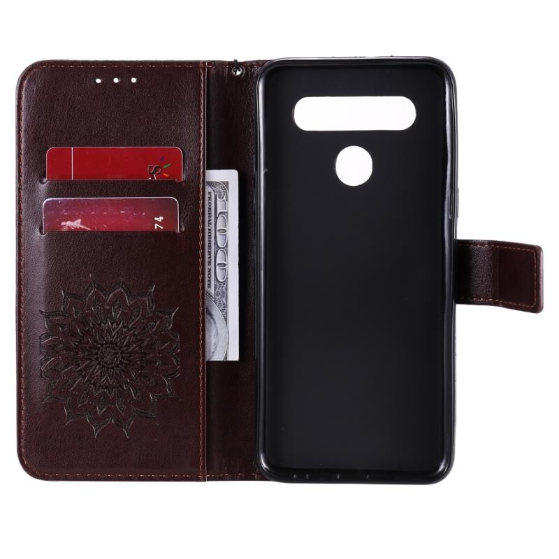 Για LG K41S & K51S Πιεσμένη εκτύπωση ηλιοτρόπιο μοτίβο οριζόντια Flip PU δέρμα θήκη κάτοχος & υποδοχές καρτών & πορτοφόλι & Lanyard (καφέ)