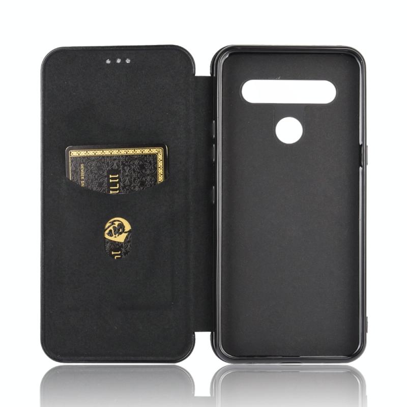 For LG K41S / K51S Carbon Fiber Texture Horizontal Flip TPU + PC + PU Leather Case with Card Slot(Black)