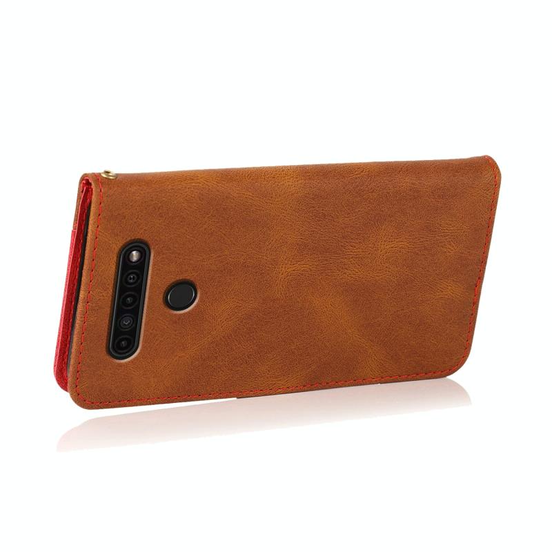 Θήκη τηλεφώνου από δέρμα με διχρωμία ραφής για LG K41S / K51S (Καφέ Κόκκινο)