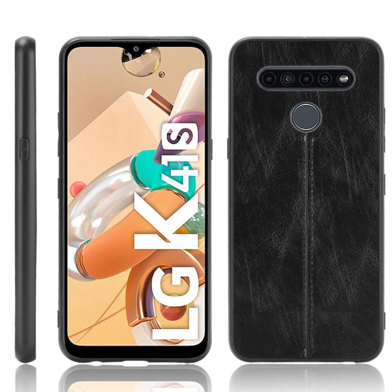 For LG K41S/ K51S Shockproof Sewing Cow Pattern Skin PC + PU + TPU Case(Black)