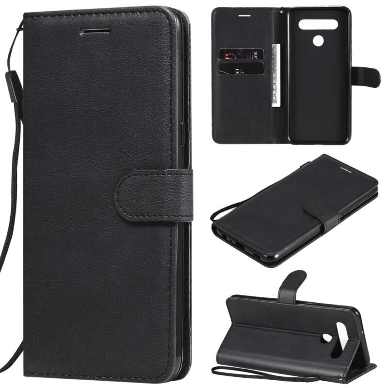 Για LG K41S / K51S Αμιγές χρώμα οριζόντια Flip προστατευτική δερμάτινη θήκη με θήκη & υποδοχές για κάρτες & πορτοφόλι & πλαίσιο φωτογραφιών & κορδόνι (μαύρο)