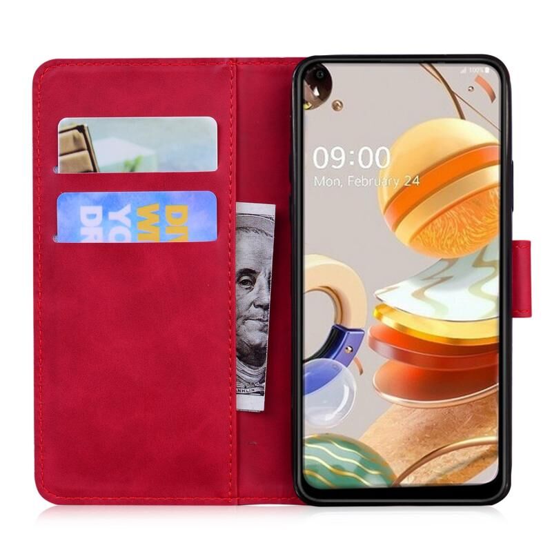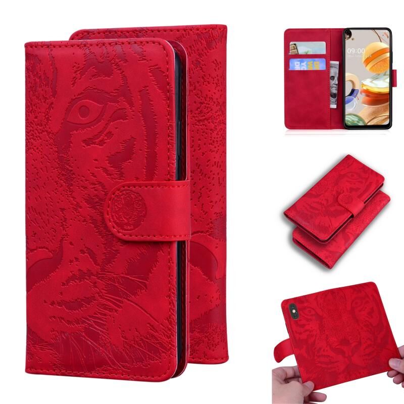 Θήκη δέρματος οριζόντιας αναδίπλωσης με ανάγλυφο σχέδιο τίγρης για LG K41S / K51S με βάση & υποδοχές καρτών & πορτοφόλι (Κόκκινο)